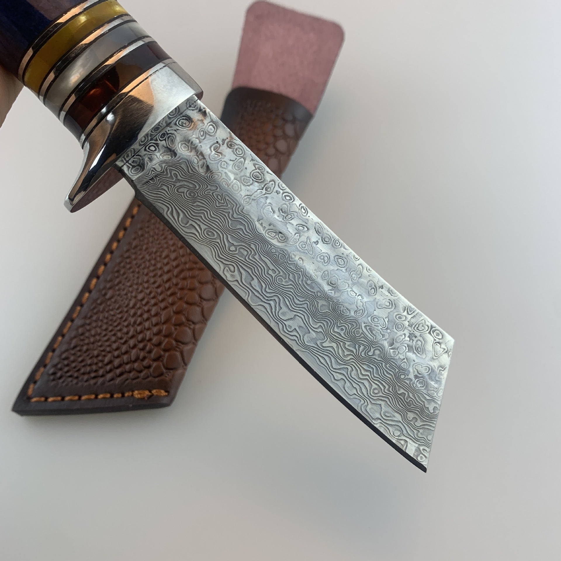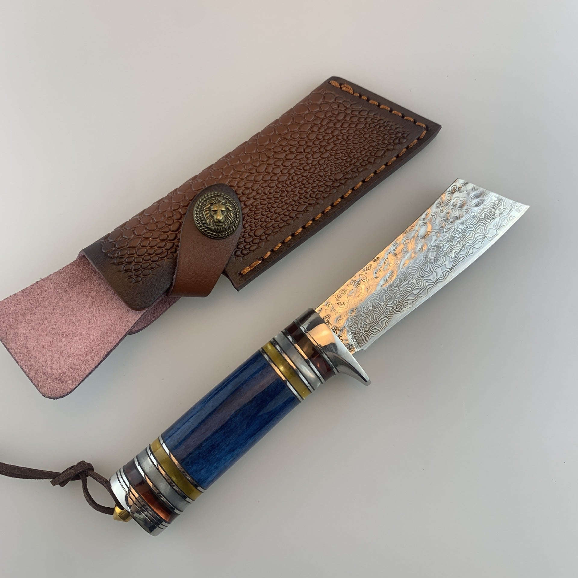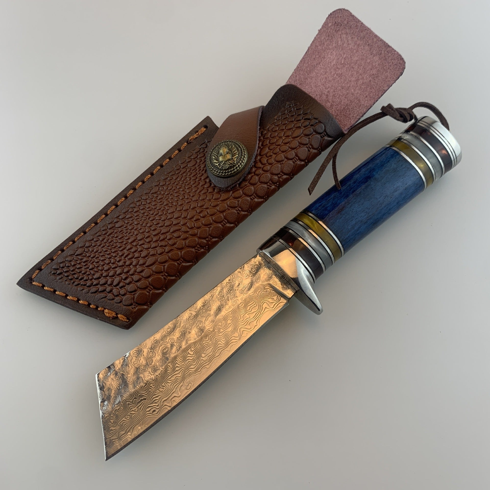 🔥BARON knives are hand-hammered with 67 layers of VG10 Damascus steel, ensuring a sharp edge for all your kitchen needs. Whether you're peeling, shaping, slicing, or chopping herbs and cheese, BARON will elevate your cooking skills. The handle, crafted from blue-dyed camel bone + resin + stainless steel + brass tail vertebrae, is covered in high-quality top-layer cowhide, adding a touch of rugged sophistication to every dish.