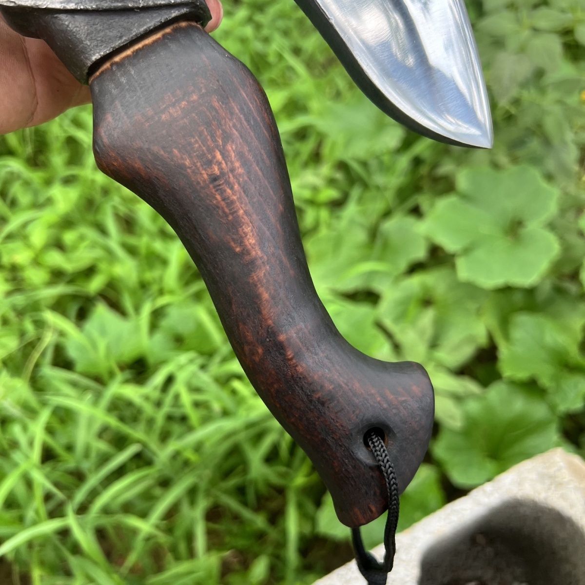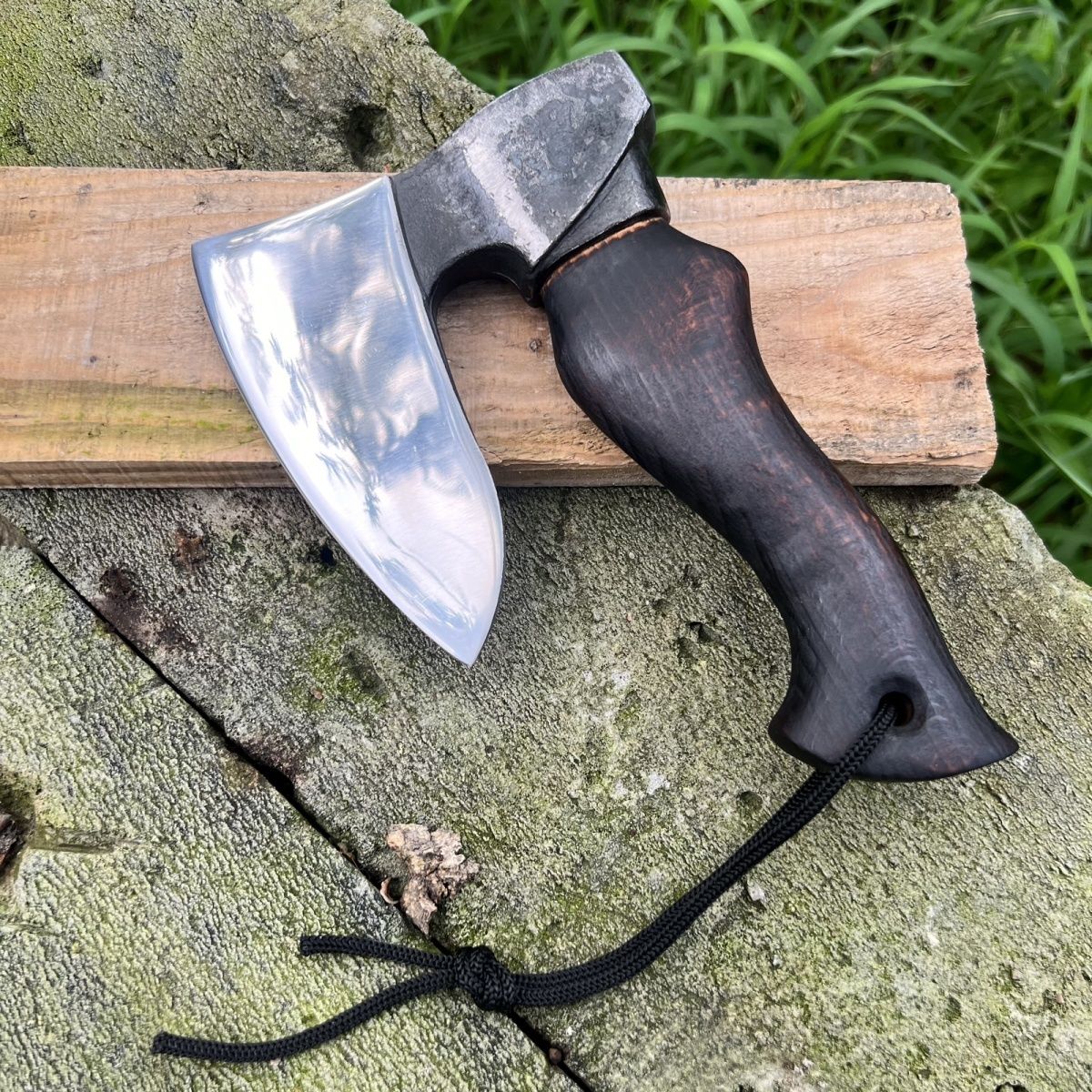Optimize your outdoor adventures with DWARVES - the ultimate companion. Expertly crafted from 65 manganese steel with a 60HRC hardness, this axe is razor-sharp and perfect for tackling any task. Its Aooka Wood handle is polished to perfection for effortless use, and the brass rivets secure the axe body and handle for maximum stability and durability. Complete with a customized Cowhide Cover, this axe is perfect for clearing obstacles, chopping wood, preparing food, and more in the wild.