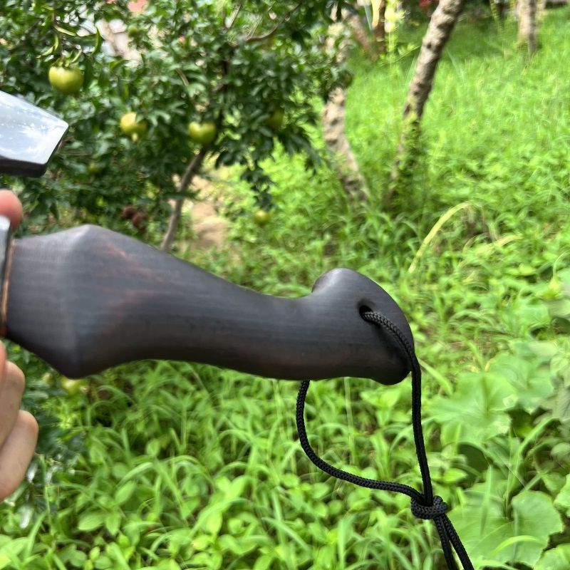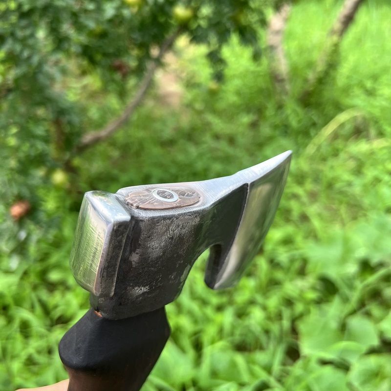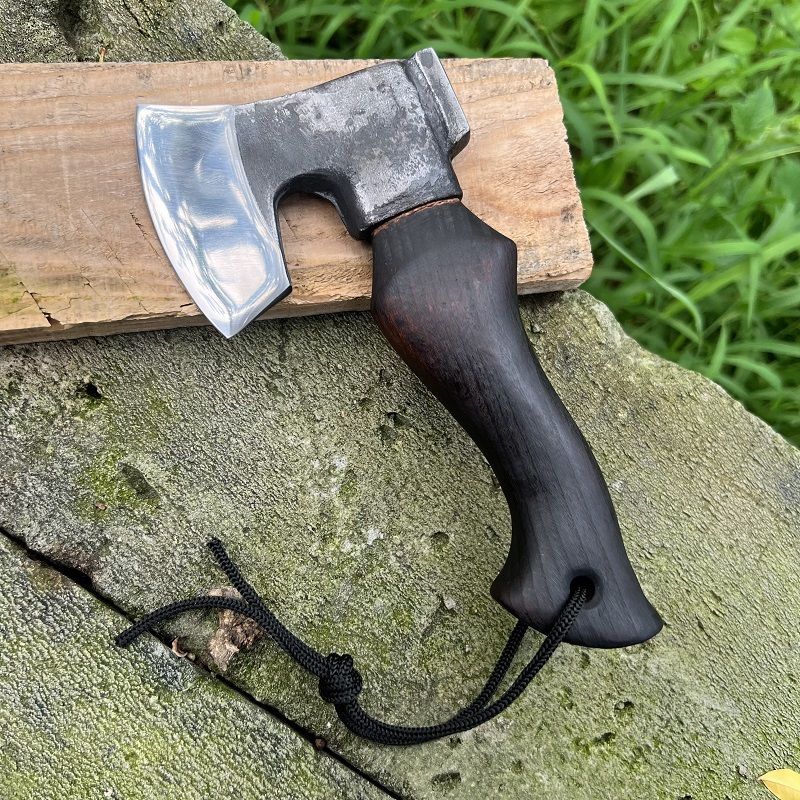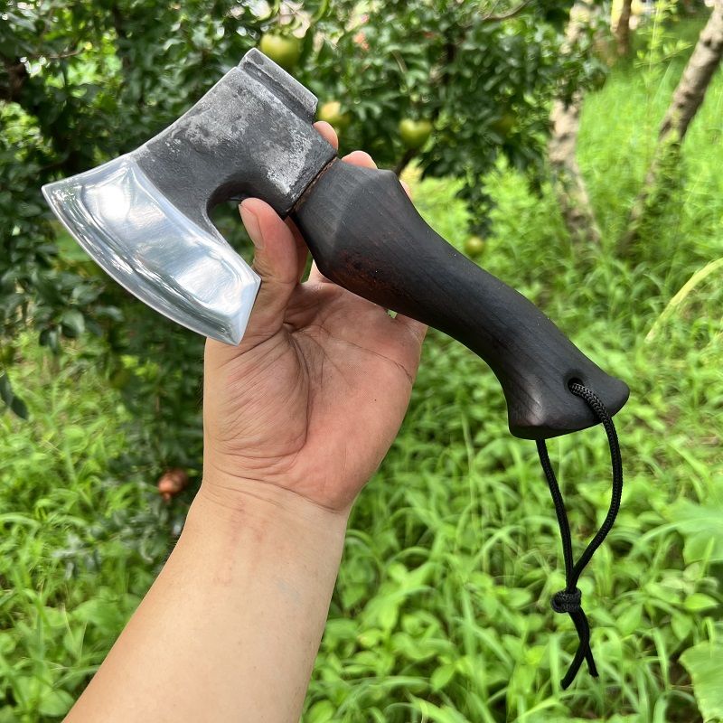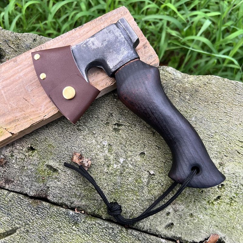 Optimize your outdoor adventures with DWARVES - the ultimate companion. Expertly crafted from 65 manganese steel with a 60HRC hardness, this axe is razor-sharp and perfect for tackling any task. Its Aooka Wood handle is polished to perfection for effortless use, and the brass rivets secure the axe body and handle for maximum stability and durability. Complete with a customized Cowhide Cover, this axe is perfect for clearing obstacles, chopping wood, preparing food, and more in the wild.