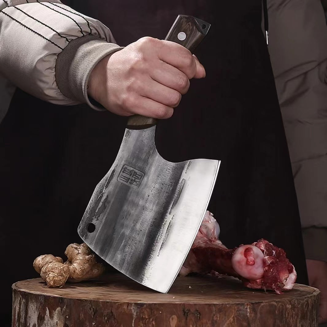 Experience ultimate precision and strength with the KASUMI™ Hand Forged TATARA Butcher Knife. Crafted from super hard alloy VG-10 steel and hand-forged at 1600 degrees, you'll enjoy a long-lasting edge and maximum durability. The arc-shaped blade is tough and balanced, while the South American sandalwood handle ergonomically fits your hand. Whether you're slicing vegetables, cutting meat, or chopping bones, this knife will meet all your kitchen needs!