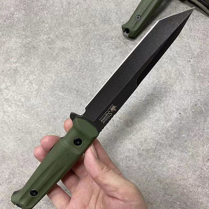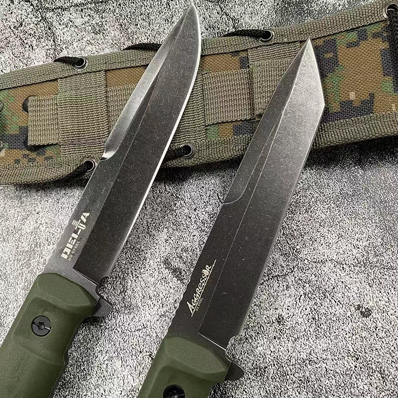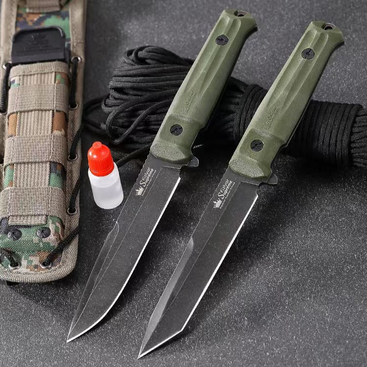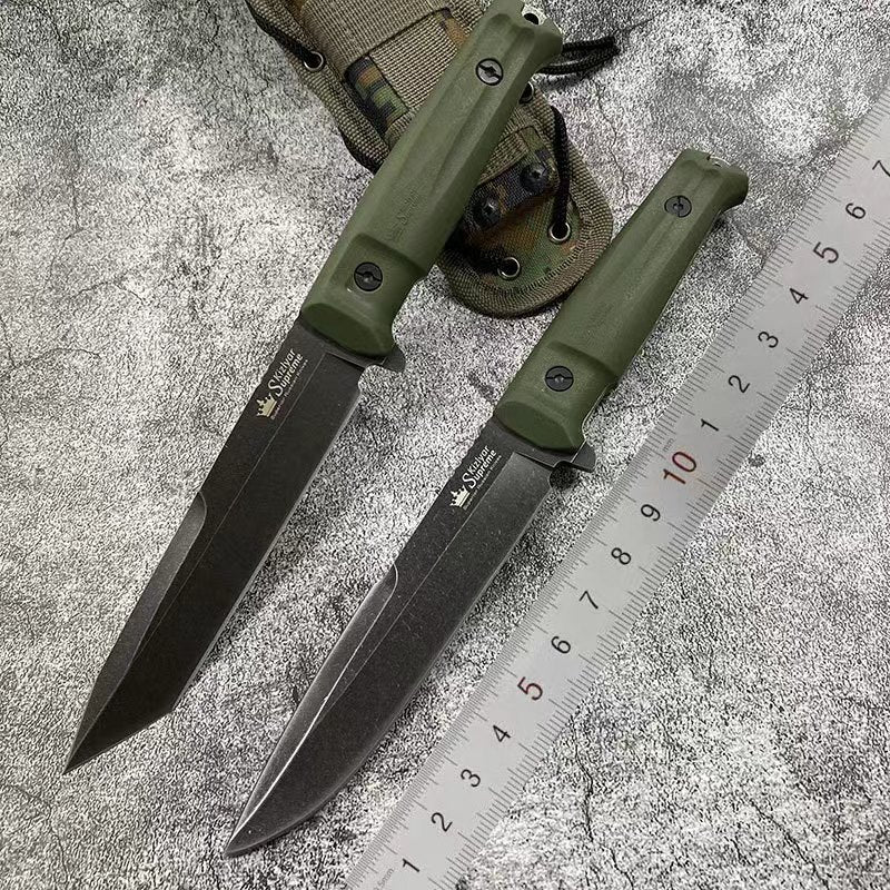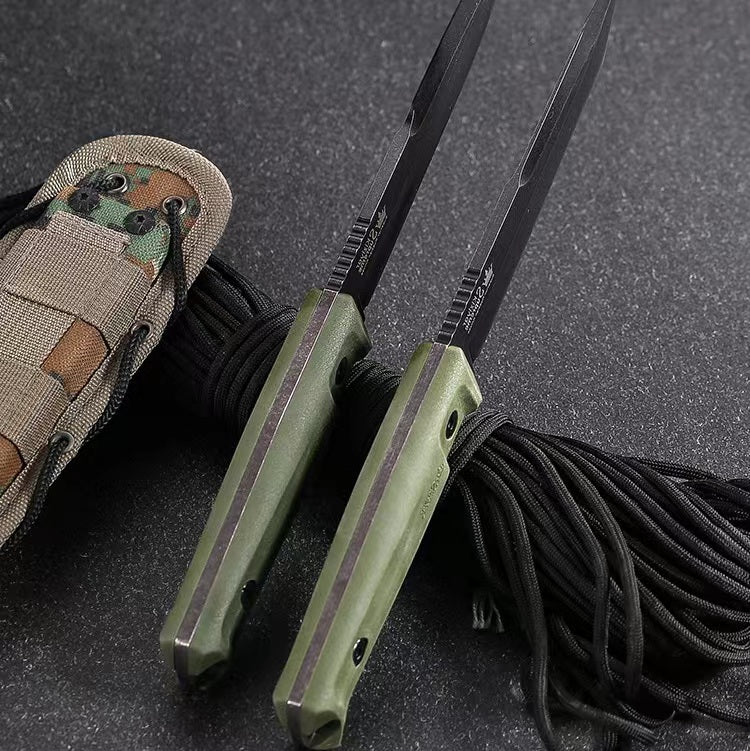 ⭐Made of D2 steel, it has high toughness and strong hardness. Integrated keel design, evenly stressed and resistant to breakage;⭐Comes with a camouflage canvas knife sheath, suitable for carrying in the wild.
