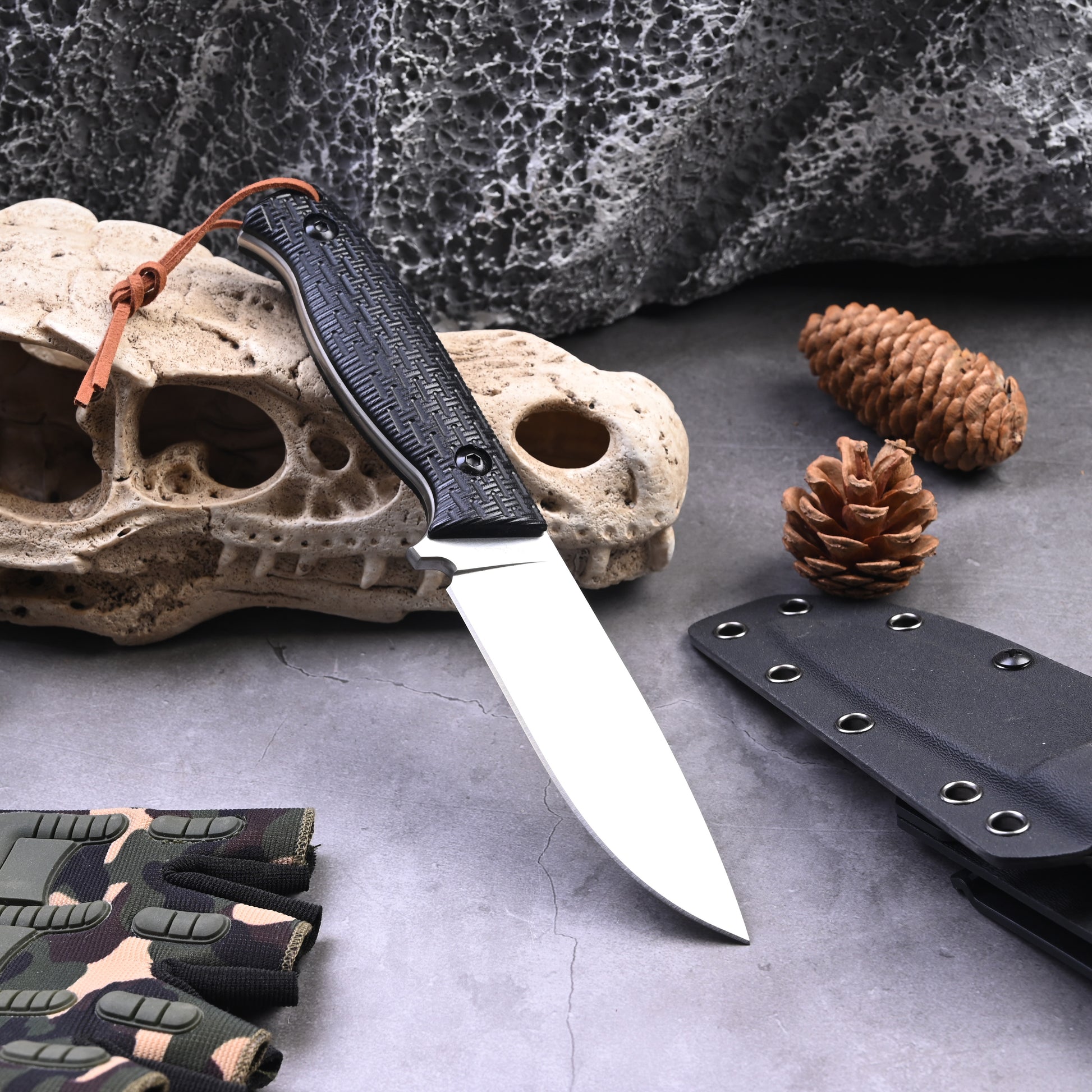 ⭐This full Tang knife is made of D2 steel with high carbon nylon handle. It is specially designed for fishing, hunting and camping.