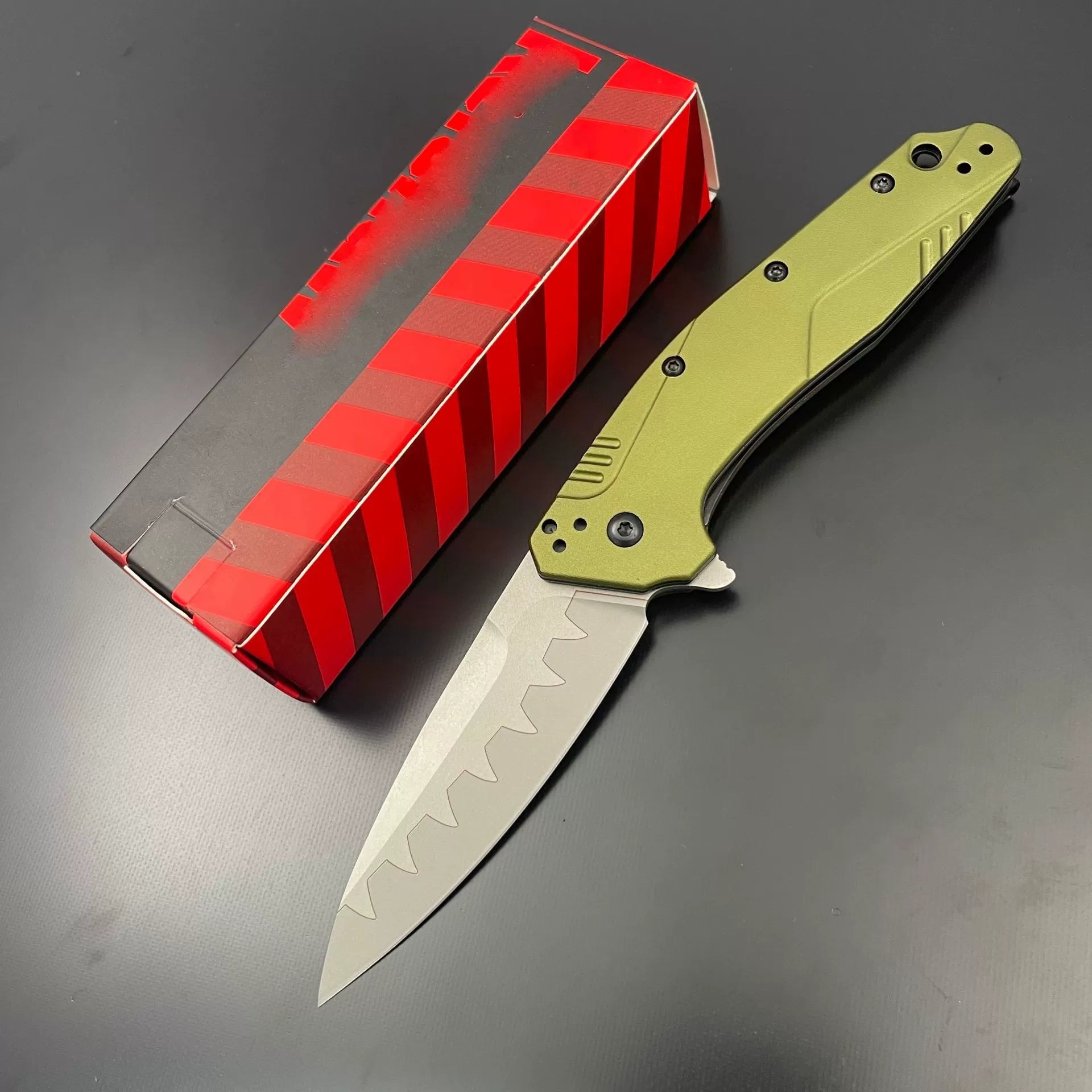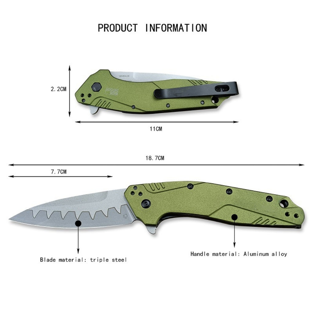 ROYCE is a lightweight, high-hardness folding knife. The handle is made of aircraft aluminum and is full of mechanical style. The bright green color will easily catch your eye.