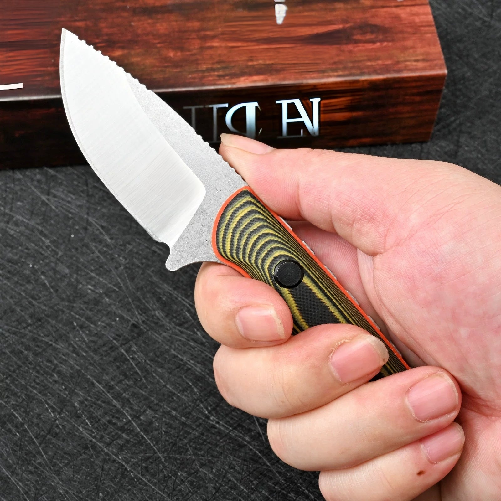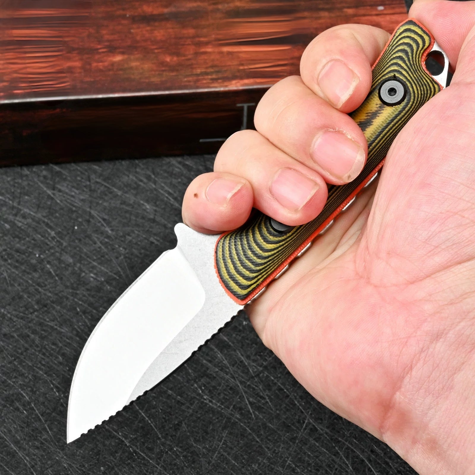 SHAKIR is ideal for outdoor activities like hunting, fishing, and hiking. At 6.5 inches, this knife features a clip for easy carrying and can handle tasks such as processing meat and cutting branches with its D2 steel and FULL-TANG forging technology. Choose from two colors, G10 and rosewood, for the super anti-slip handle. The knife also comes with a custom K sheath and back clip, making it a must-have for survival in the great outdoors.