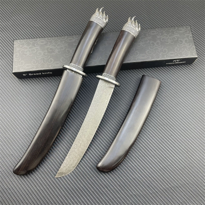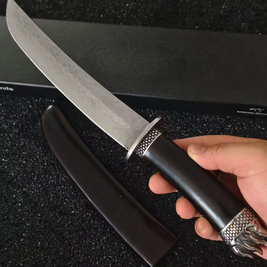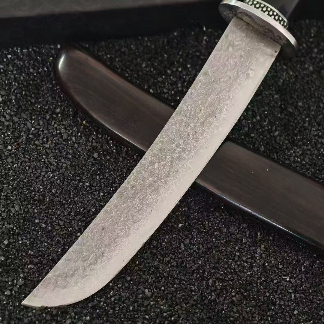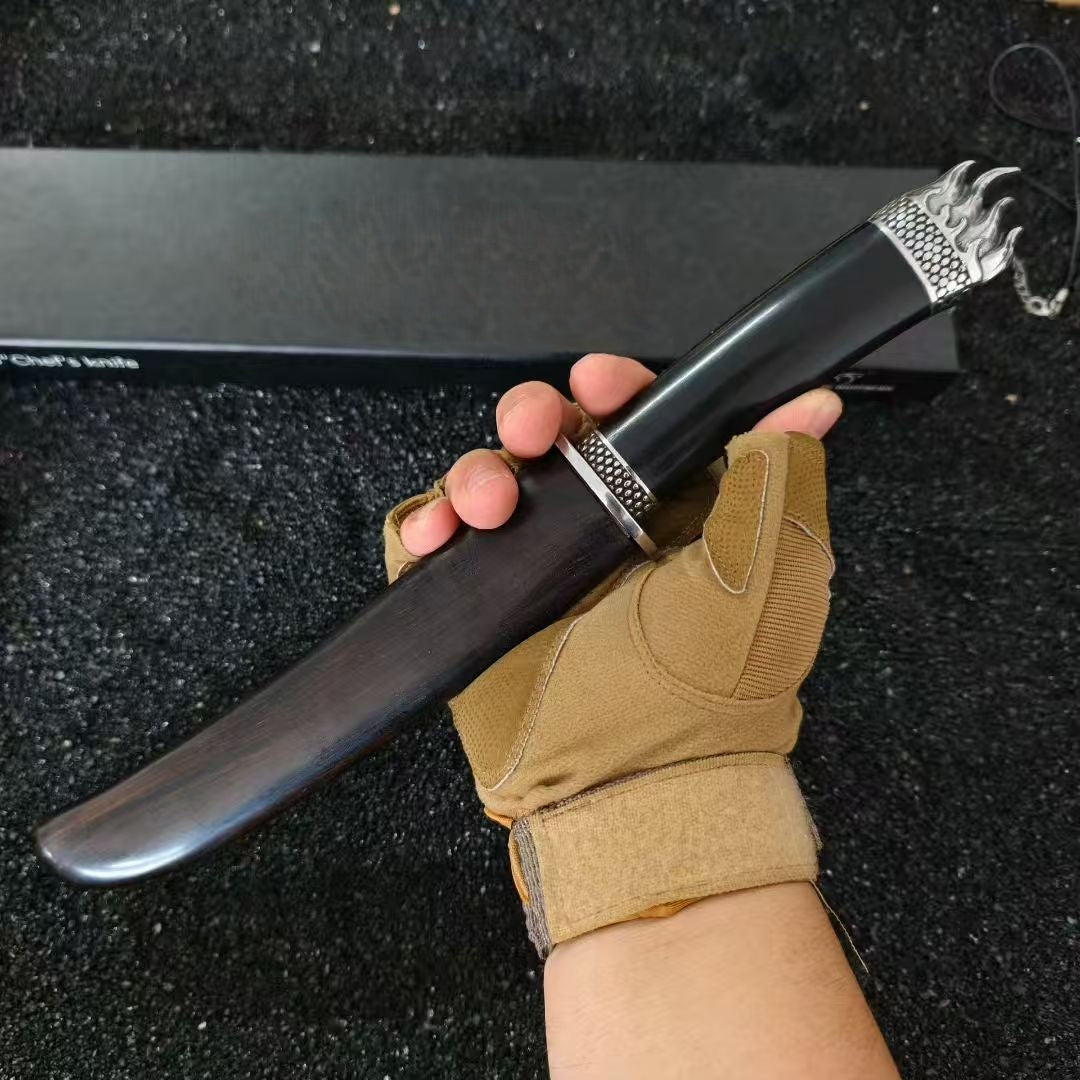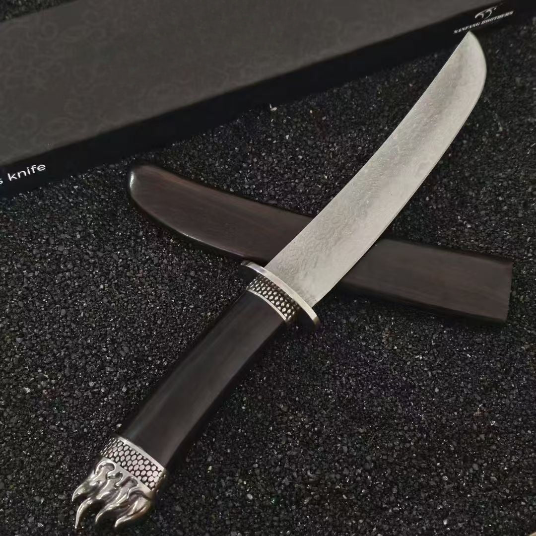 🔥Unleash your inner samurai with the WALDO - VG10 Knife! Hand-forged with full-tang precision and 67 layers of VG10 Damascus steel, its stunning ripple pattern is matched only by its sharpness. With a rock-solid 62 HRC hardness, it glides through ingredients effortlessly. The textured ebony handle and sheath give you a stealthy grip, turning meal prep into a ninja mission. Dull knives don’t stand a chance—welcome to your new culinary superpower!