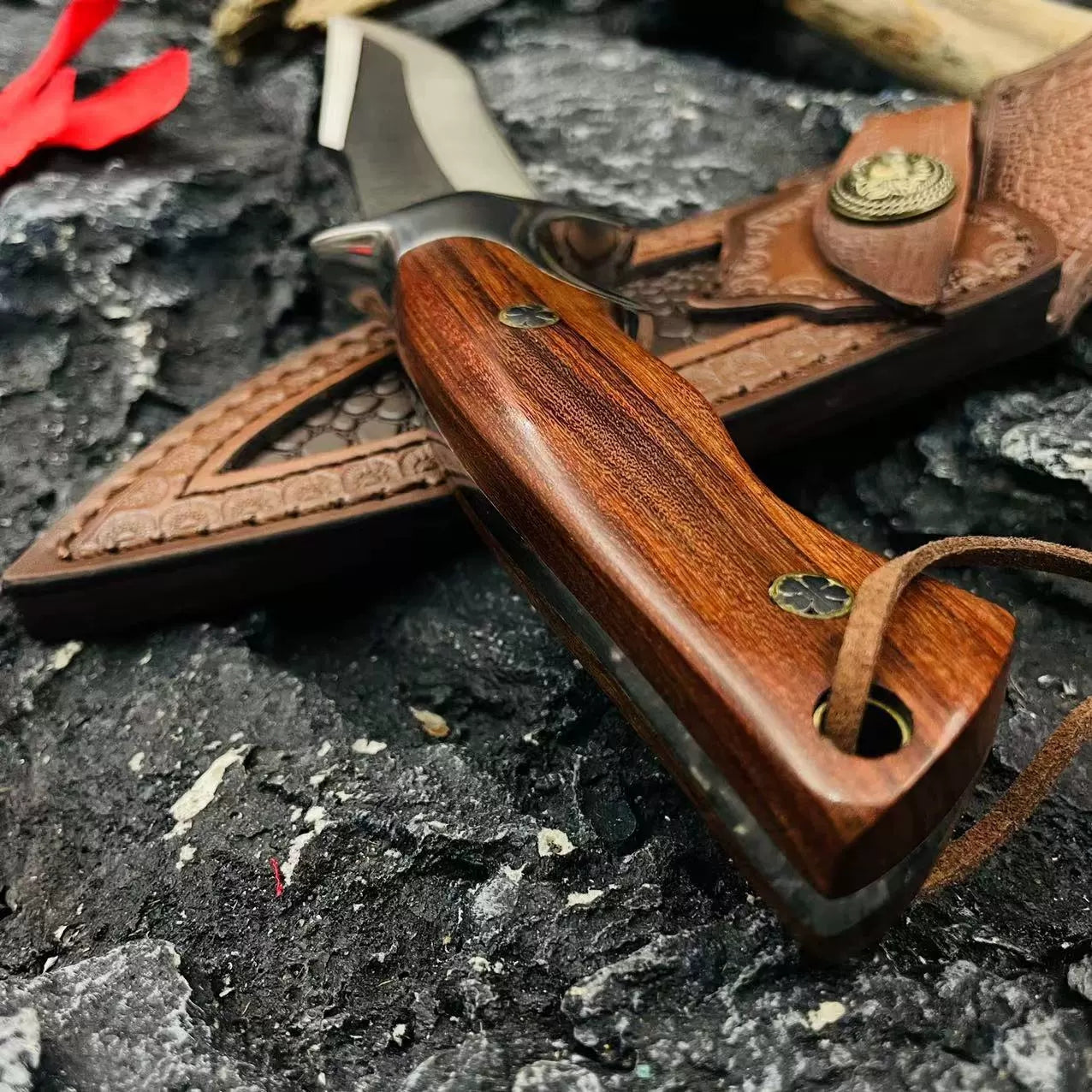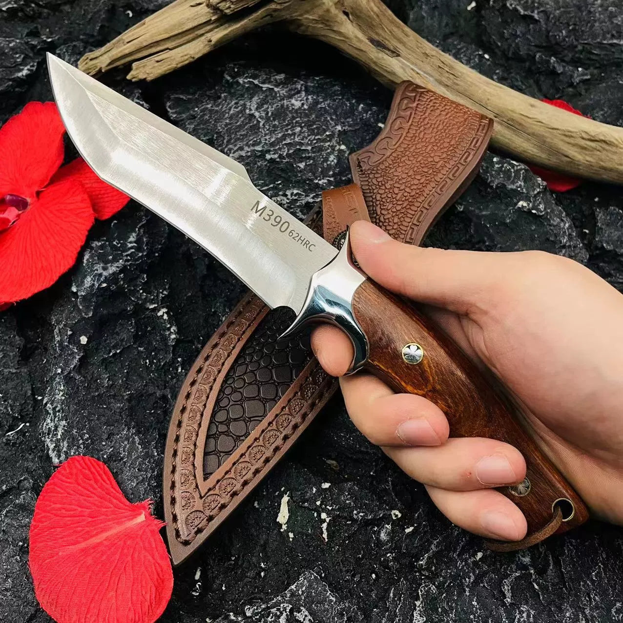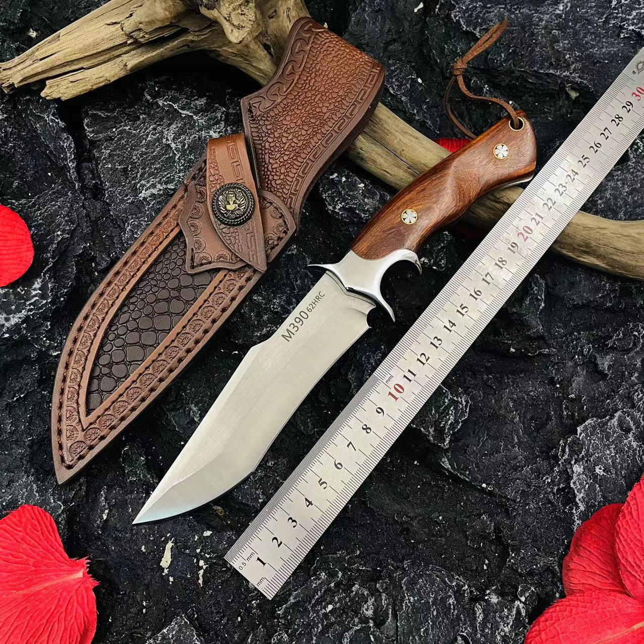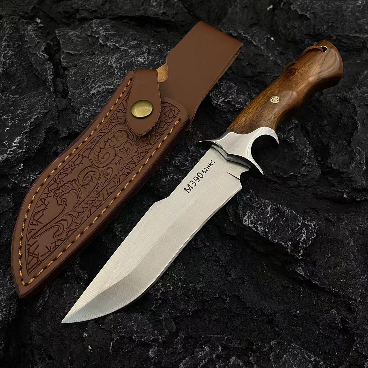 🔥Daybreak is quenched and forged from M390 powder steel, which is tough and durable.Drop-point tip design, wenge non-slip handle, custom textured leather cover, polished mirror blade. Various designs make it an excellent camping knife.