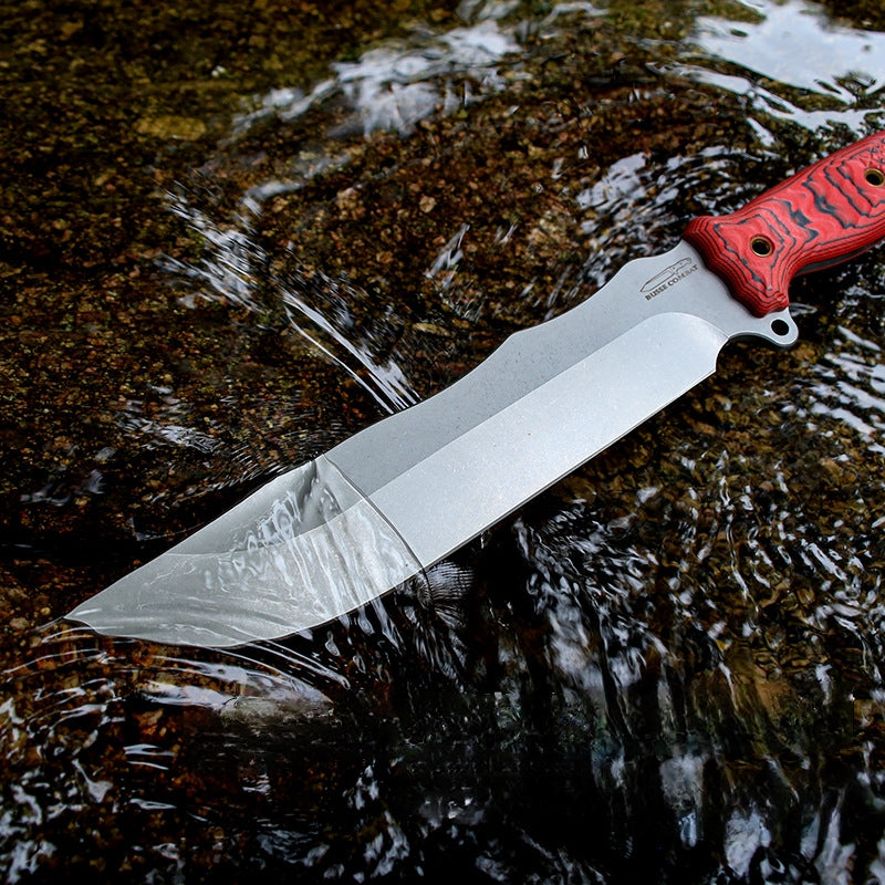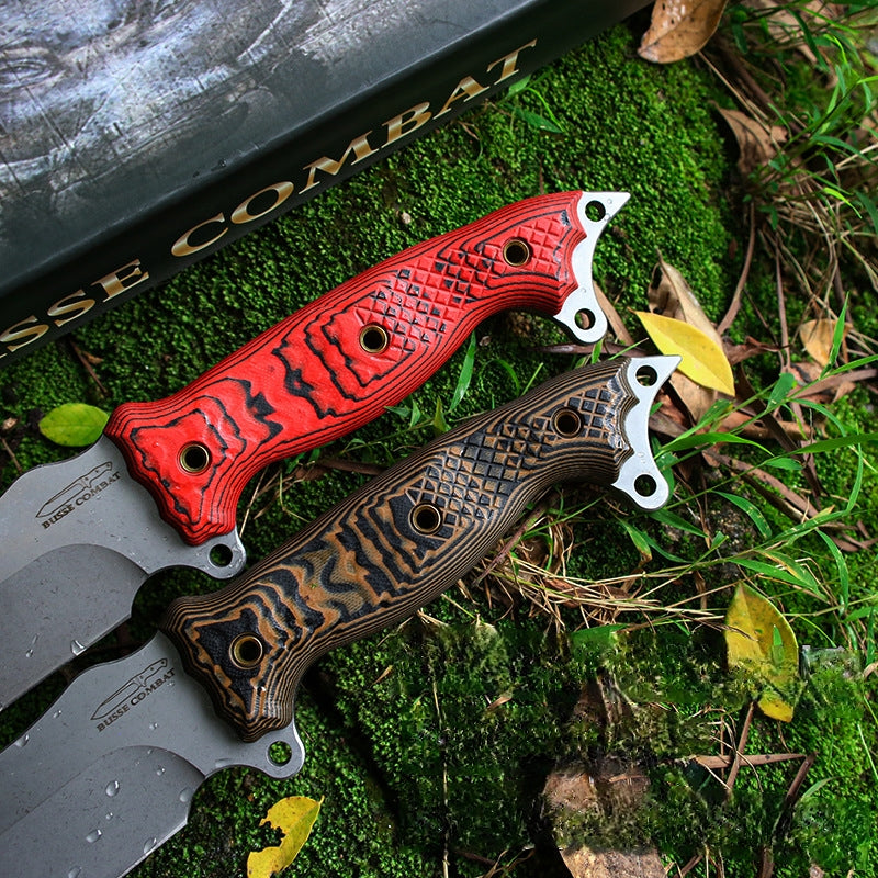 ⭐The custom hand-sculpted G-10 handle scales with traction ridges and two lashing holes make it ideal for outdoor activities and it comes with a kydex sheath.