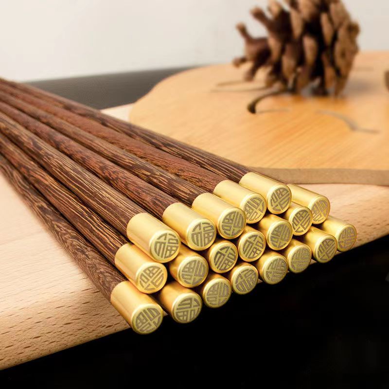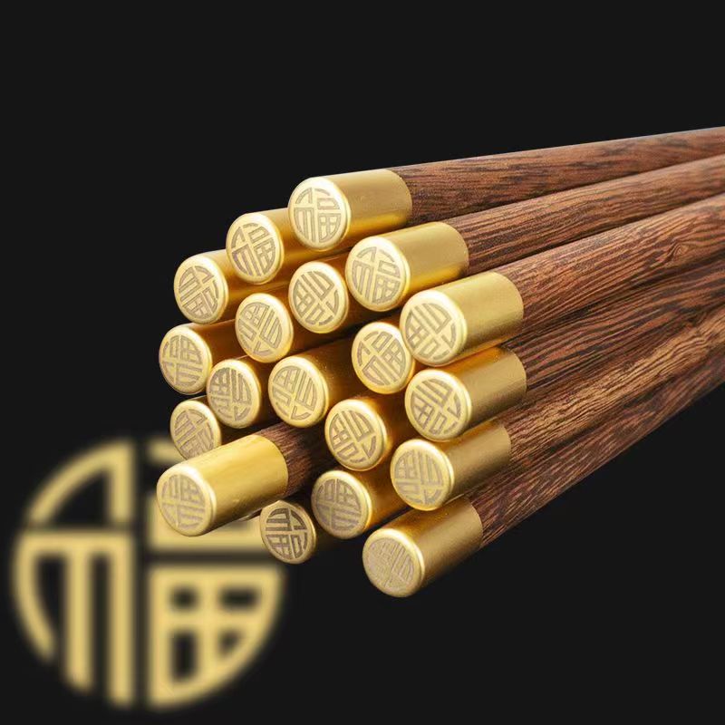 This is a traditional Chinese classic tableware, made of high-end wenge polished, with gold-plated copper head, beautiful color and durable.