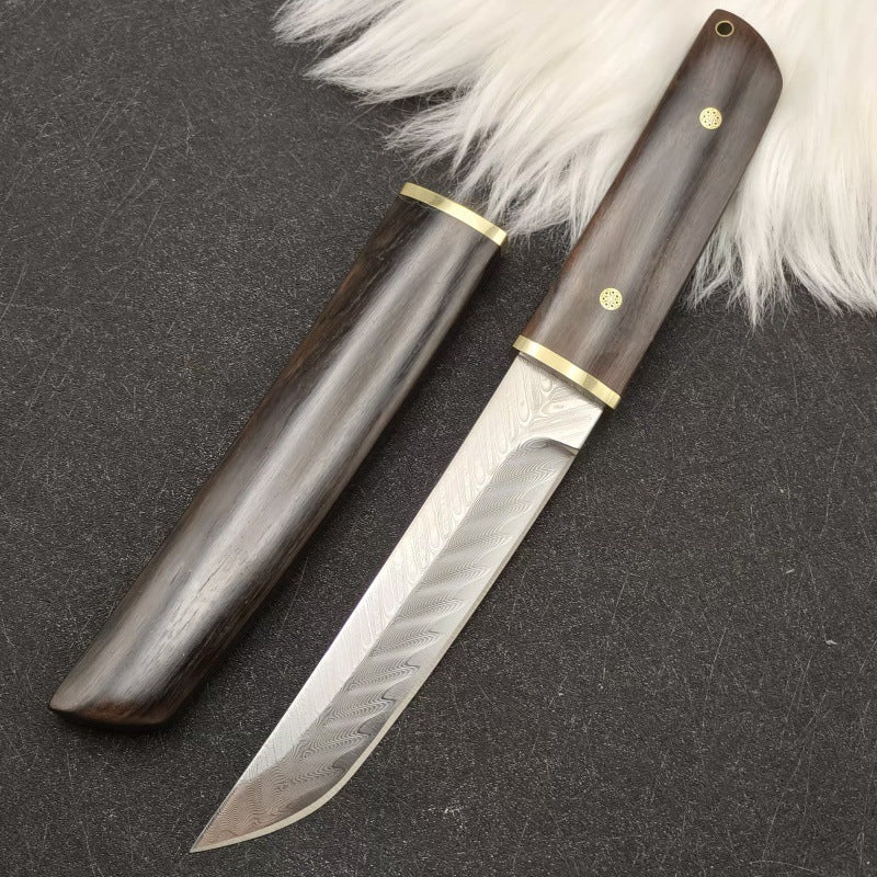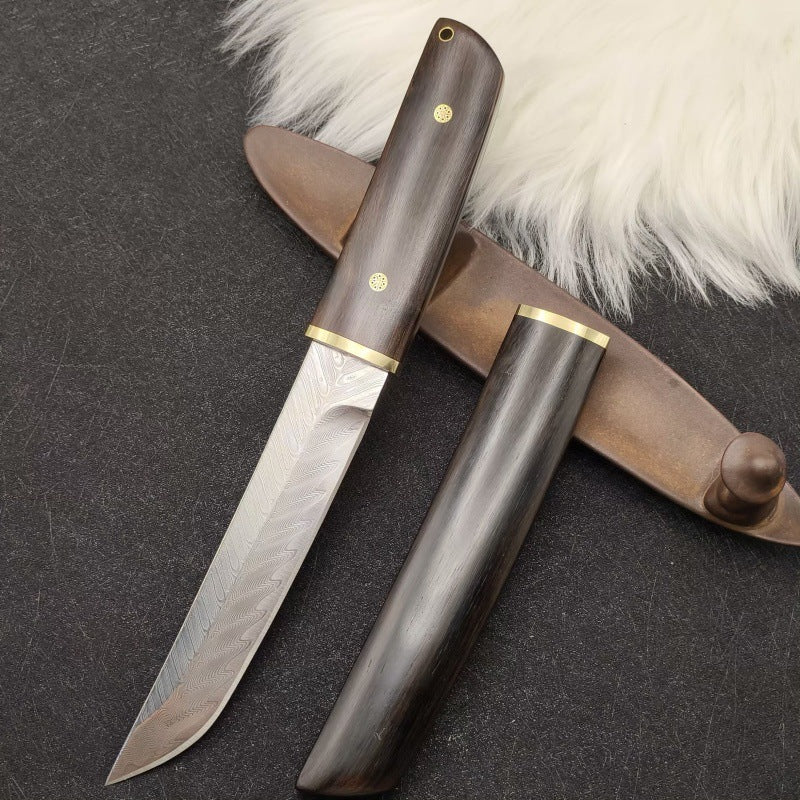 🔥GENE is the ultimate kitchen warrior knife for those who love to take risks. Crafted from 67 layers of sharp VG10 Damascus steel, this full tang knife offers perfect balance, precision, and control for any kitchen task. Its elegant ebony handle and sheath make it a must-have for all collectors.