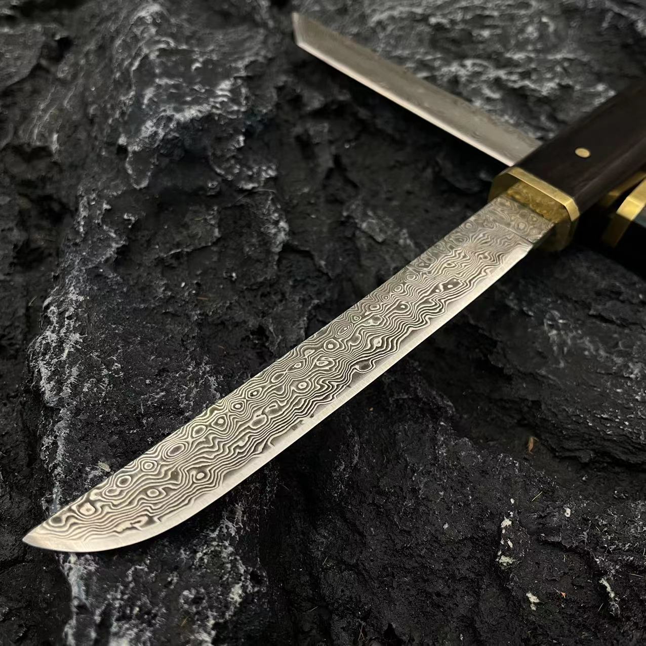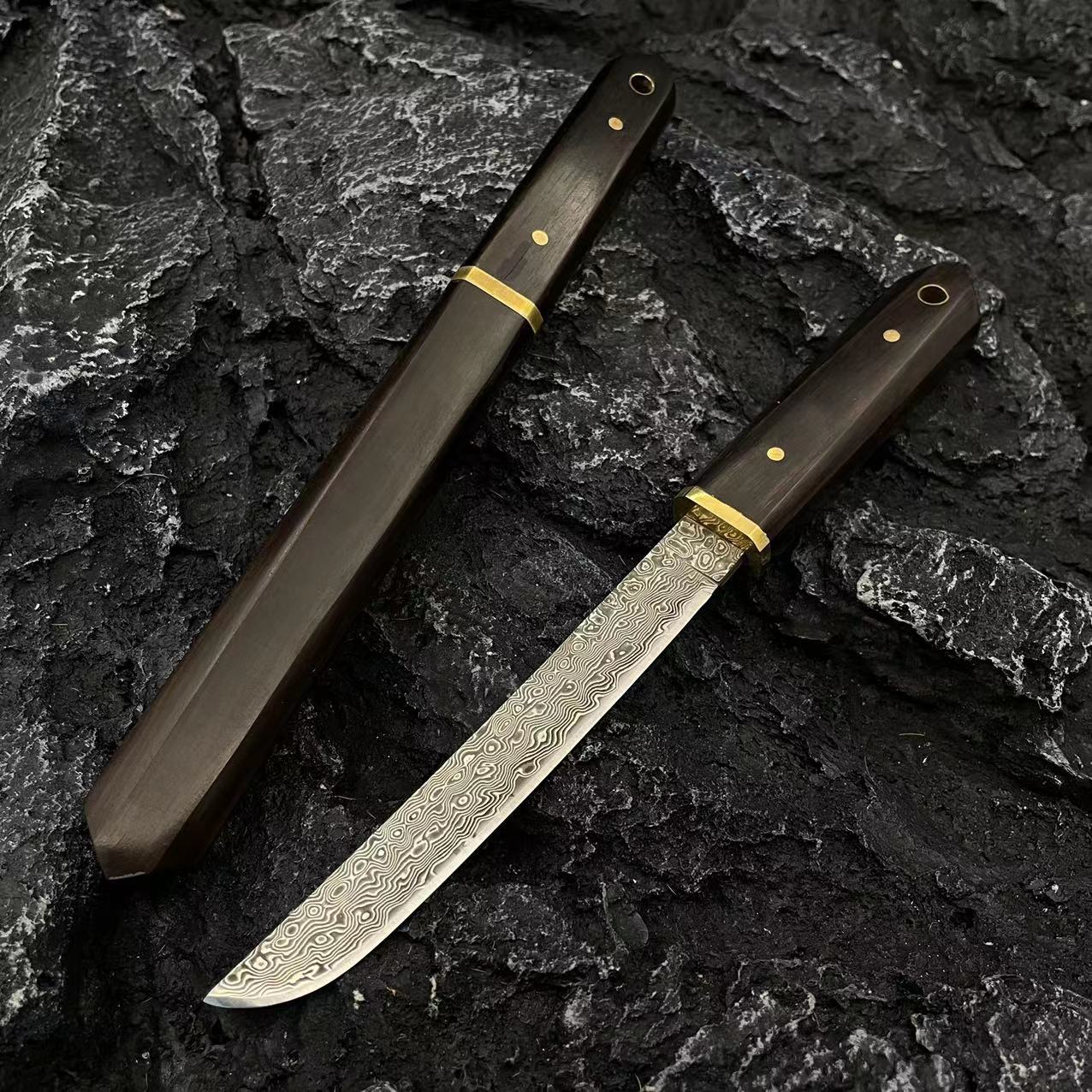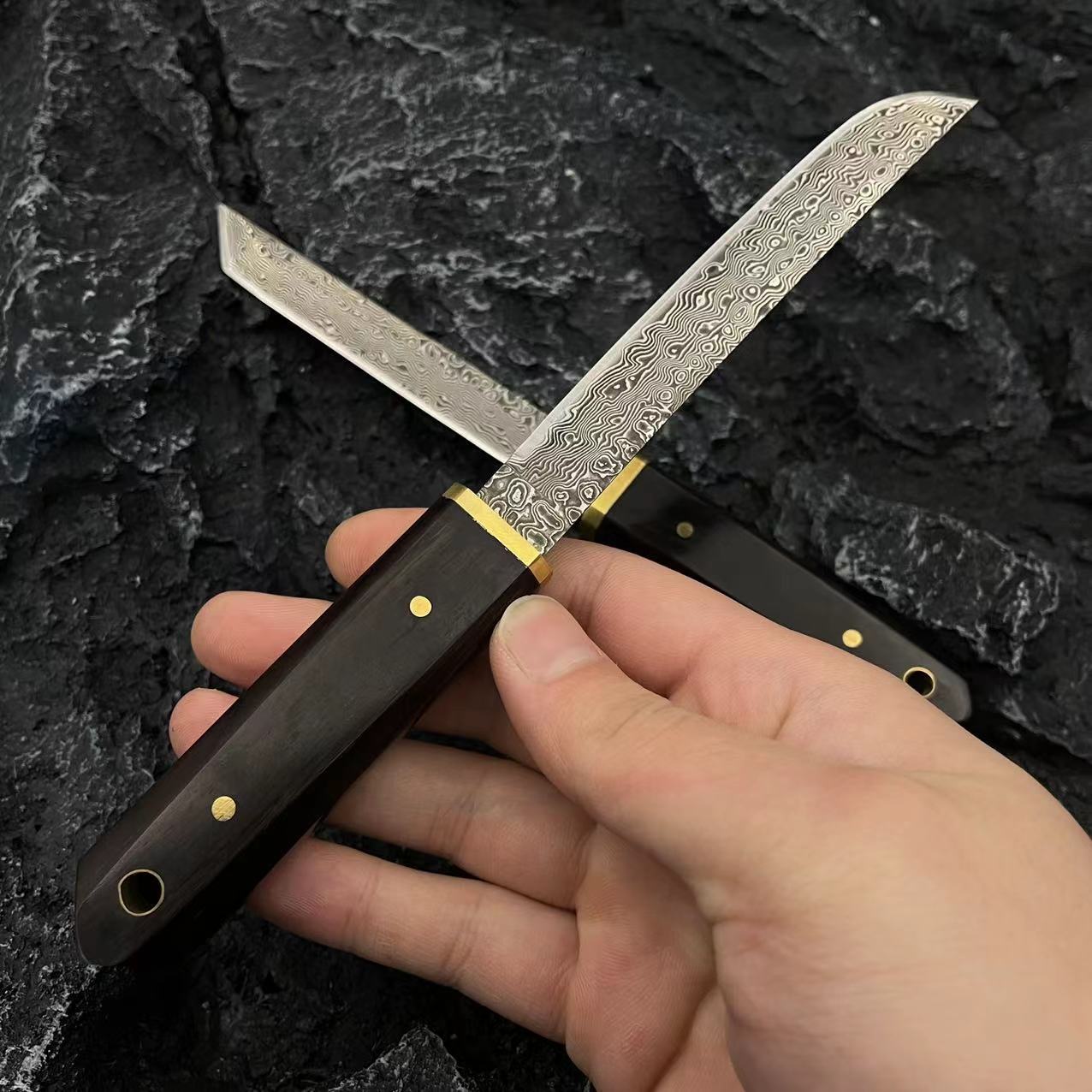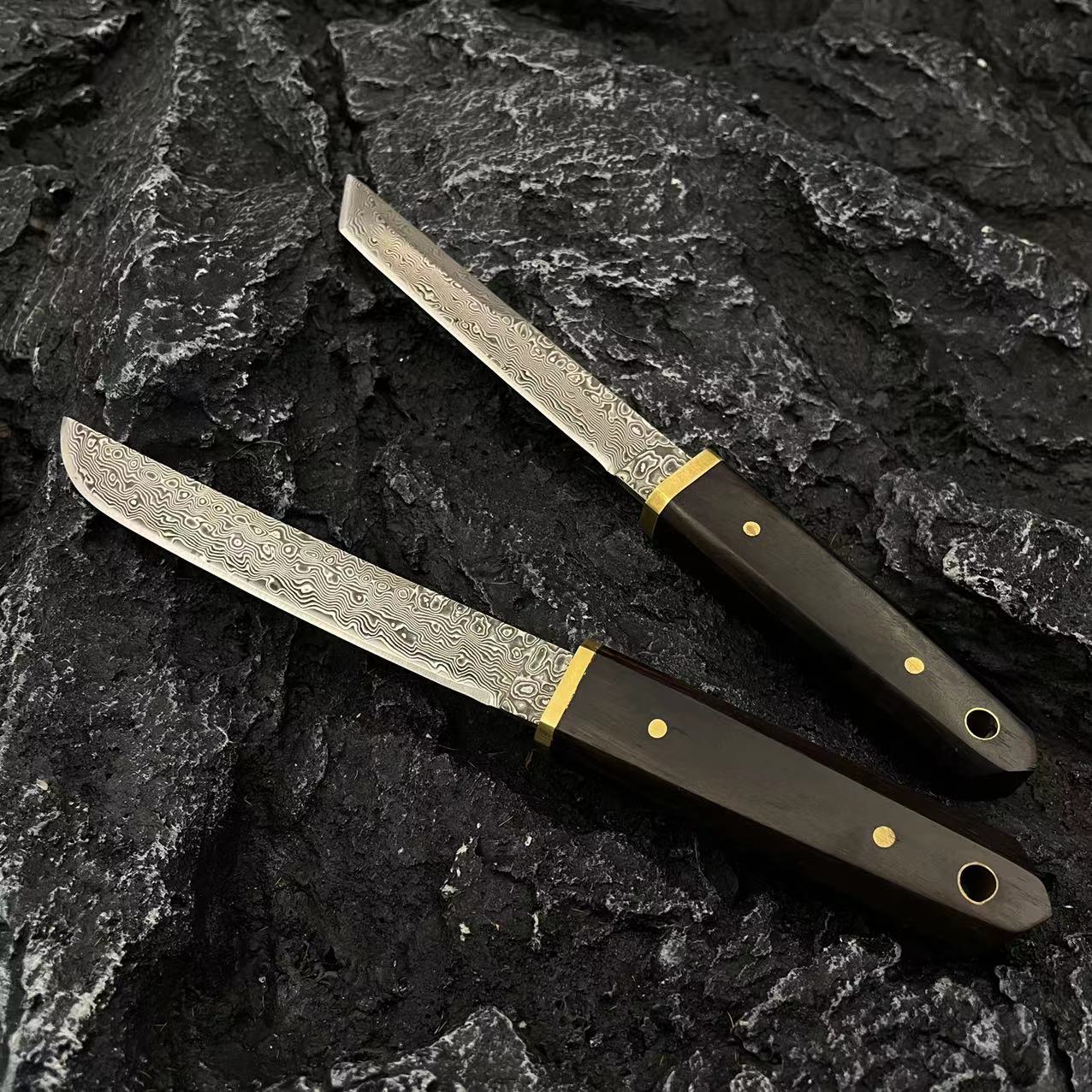🔥This is a collectible fruit knife and a perfect carving knife. Made of Damascus VG10, with ebony handle and scabbard.