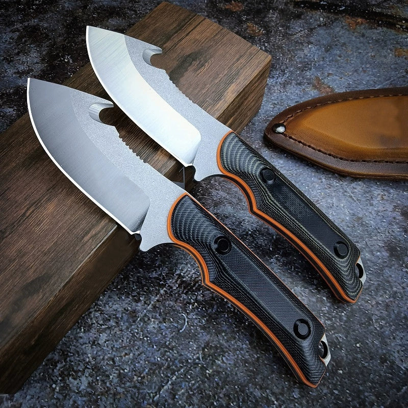 The VICTOR knife is expertly crafted for outdoor pursuits like fishing, hunting and hiking. Its 9C13MOV stainless steel blade features a fish line cutting port at the tip and is forged using FULL-TANG technology for effortless handling of tasks including meat processing, fish line cutting, and branch trimming. The anti-slip G10 handle provides a secure grip. This knife comes equipped with a custom Leather Cover, essential for any outdoor survival situation.