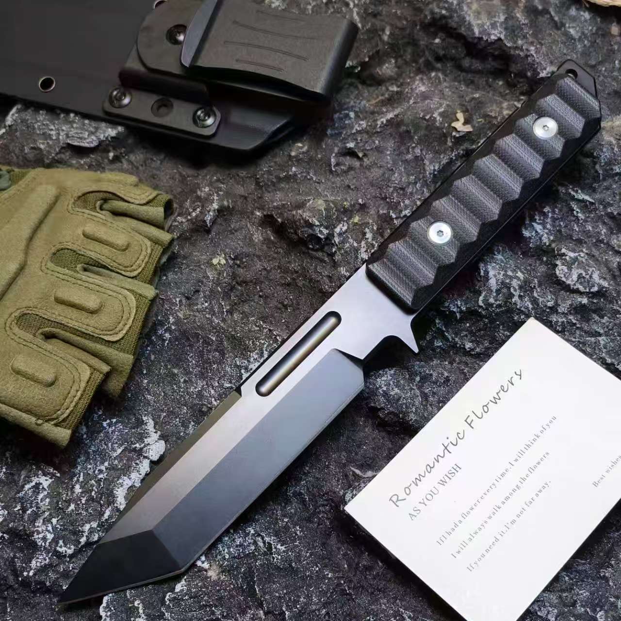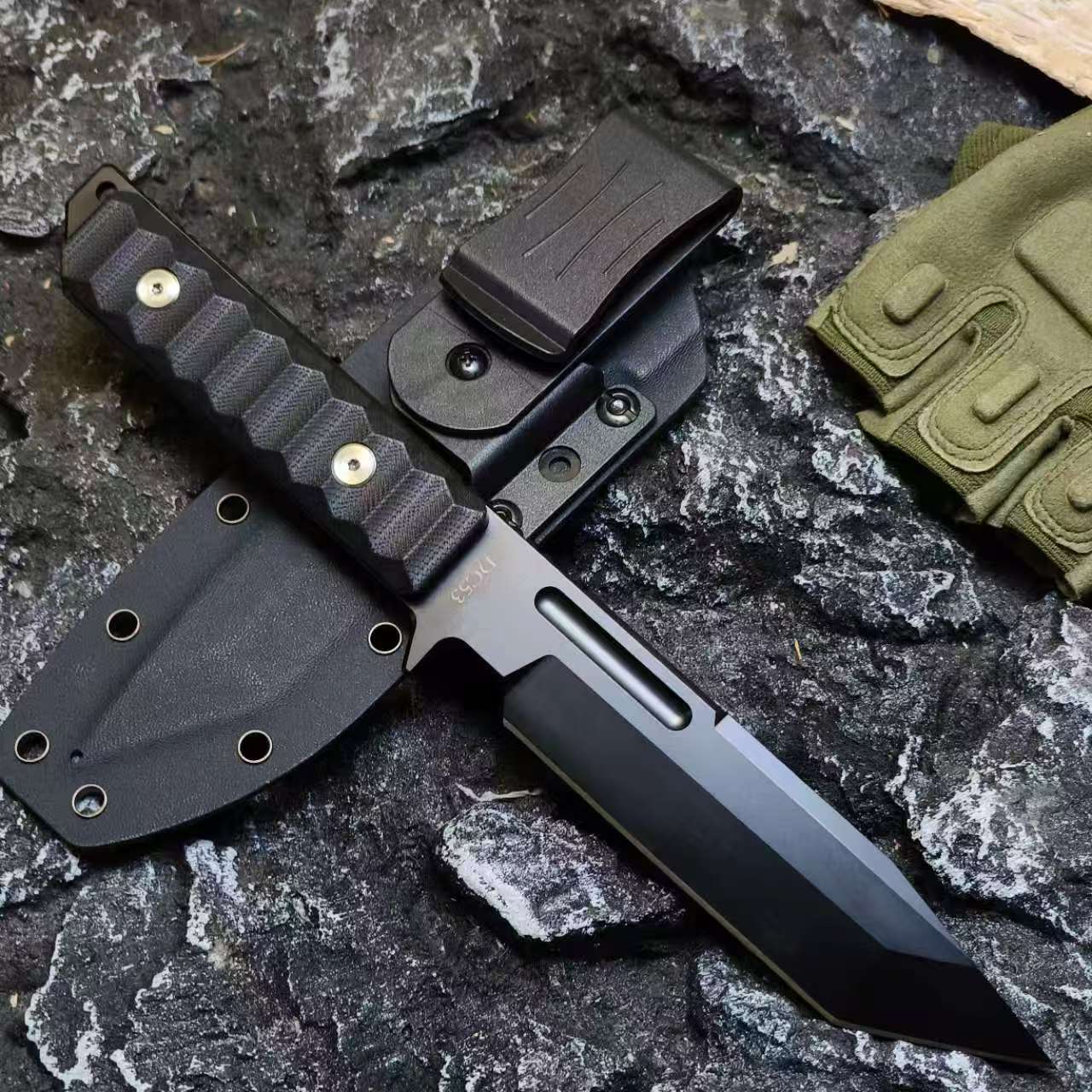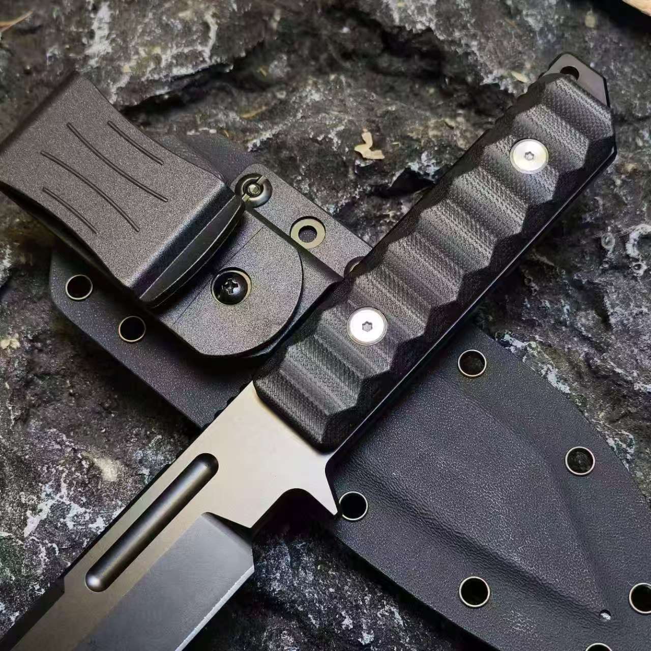 The ARCHER is a survival knife crafted for the courageous, made from resilient DC53 steel. Its sharp American Tanto blade design delivers exceptional penetrating power to overcome any challenge. The 6.53-inch full-tang blade blends durability with striking aesthetics, engineered for top performance in critical moments. With a precision CNC-machined edge and a combat-inspired T-shaped head, this knife powerfully slices through obstacles. The ergonomic G10 fiberglass handle offers a secure, non-slip grip for maximum control. Complete with a black sheath featuring a 360-degree rotating belt clip for easy waist attachment, it’s the ultimate partner for hunting, camping, hiking, and more.