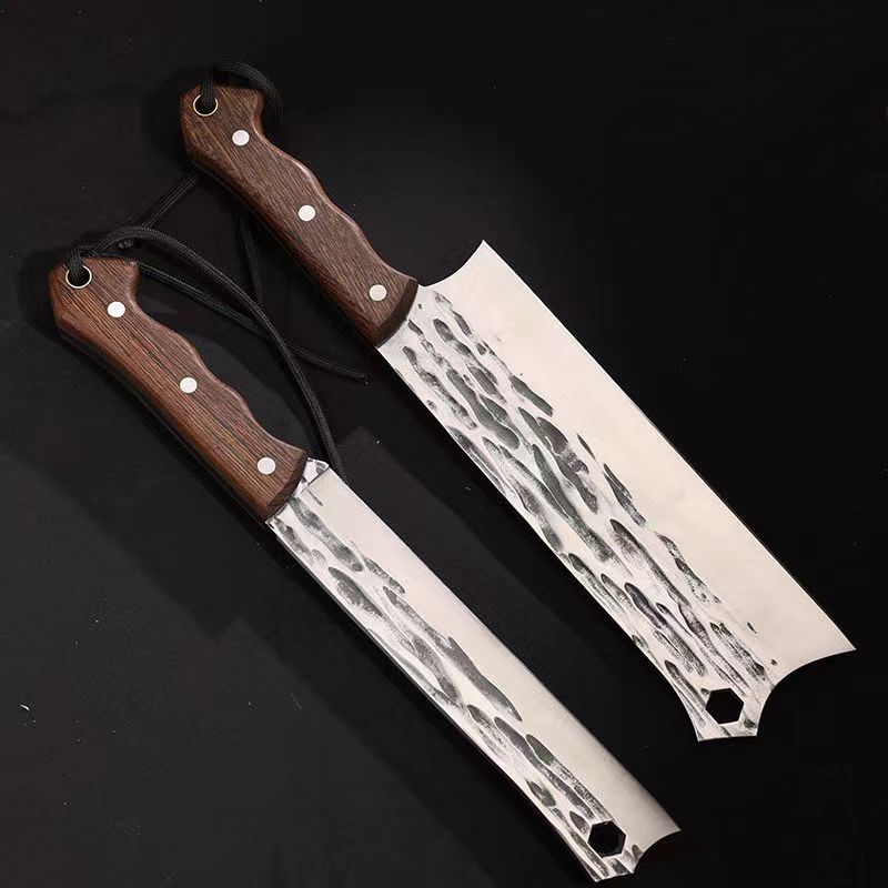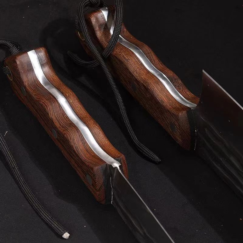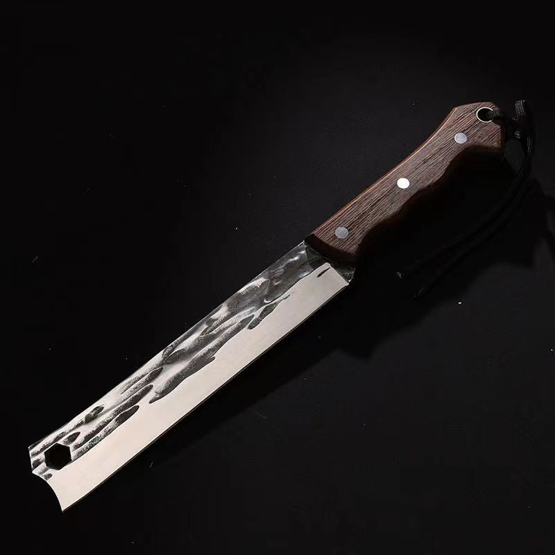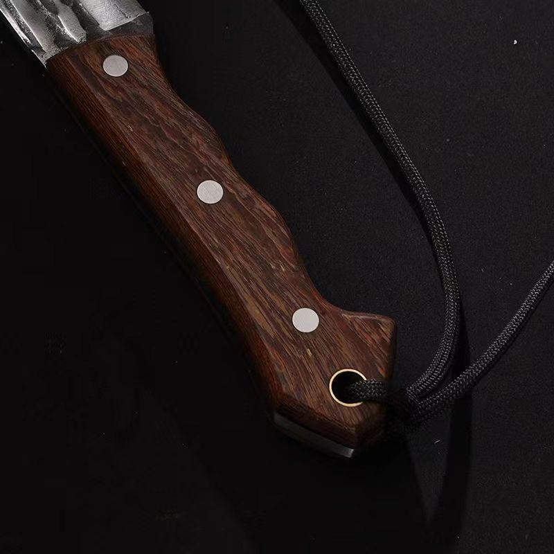 Crafted from single 5.6mm thick piece of molybdenum vanadium steel and hand-forged at 1600 degrees, you'll enjoy a long-lasting edge and maximum durability. The arc-shaped blade is tough and balanced, while the Wenge handle ergonomically fits your hand. Whether you're slicing vegetables, cutting meat, or chopping bones, this knife will meet all your camping needs!