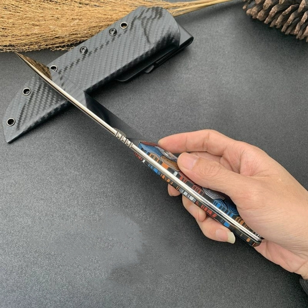 ⭐Equipped with a Custom Kydex Sheath,Back clip can be rotated 360°.