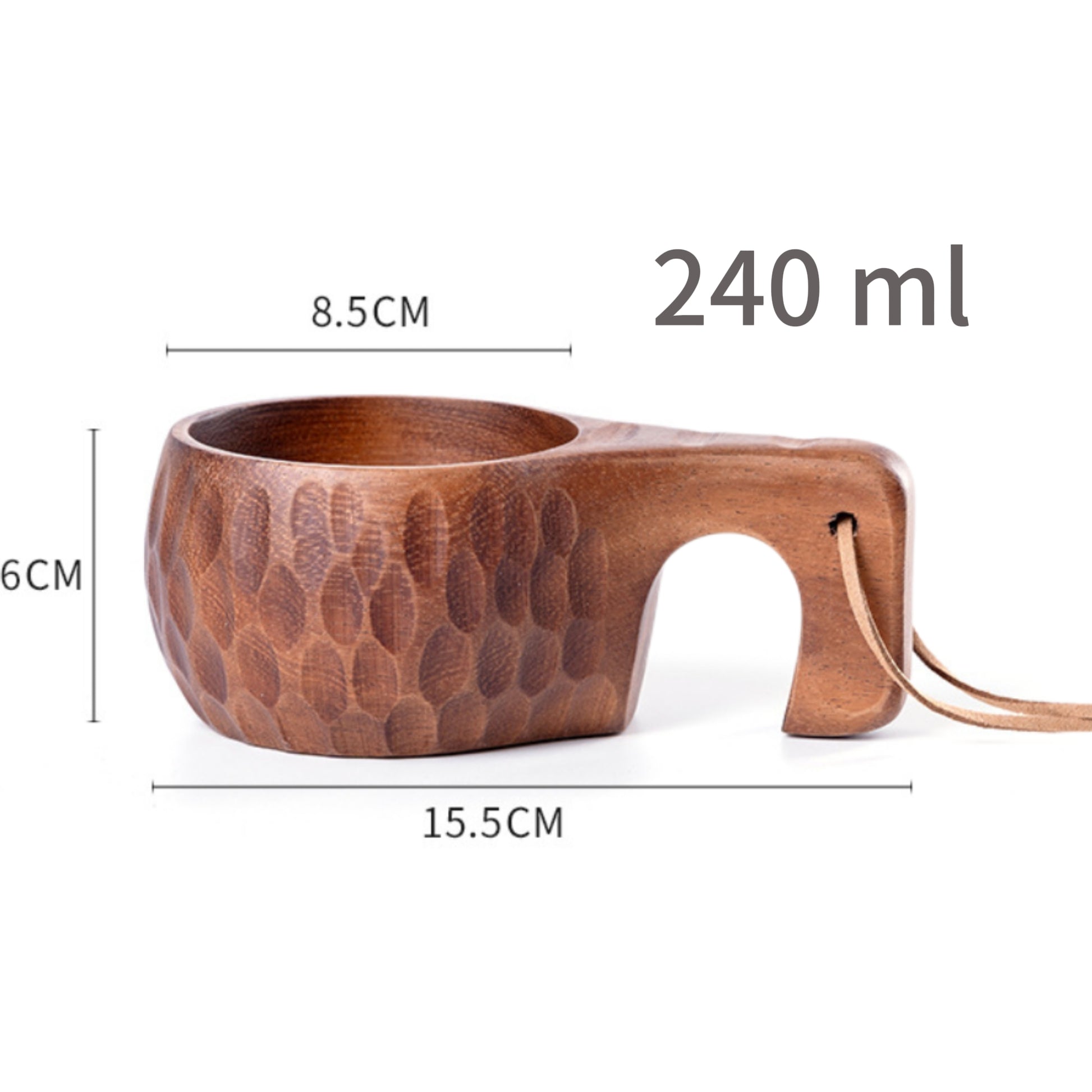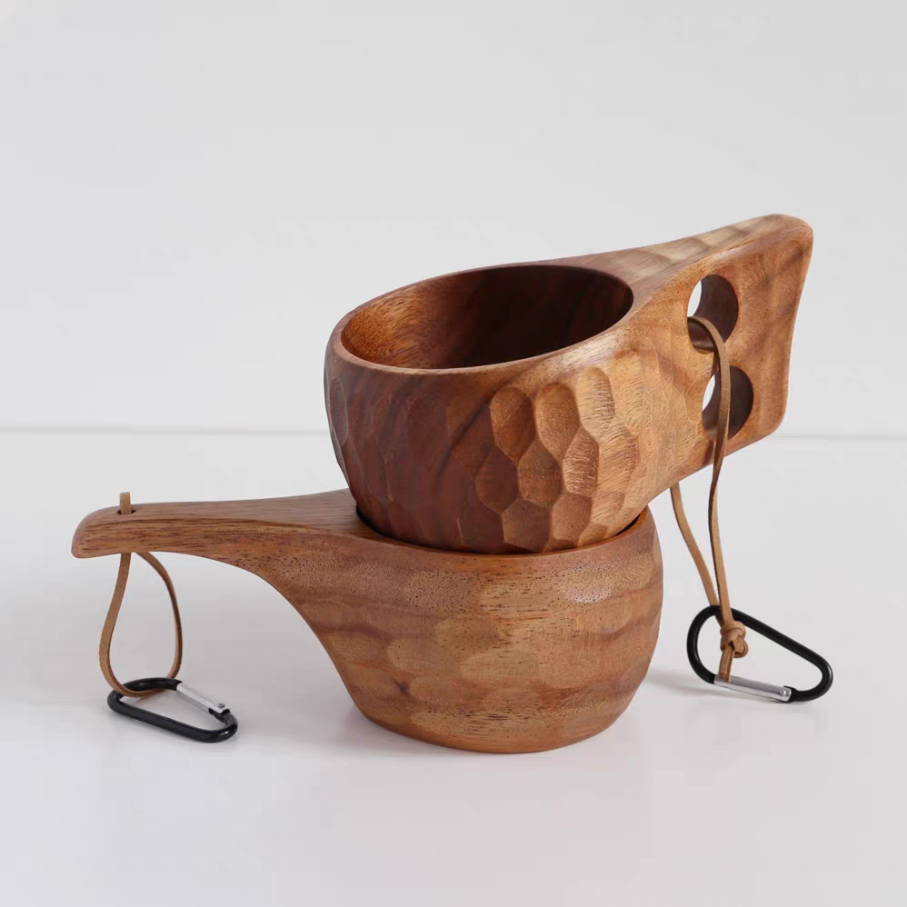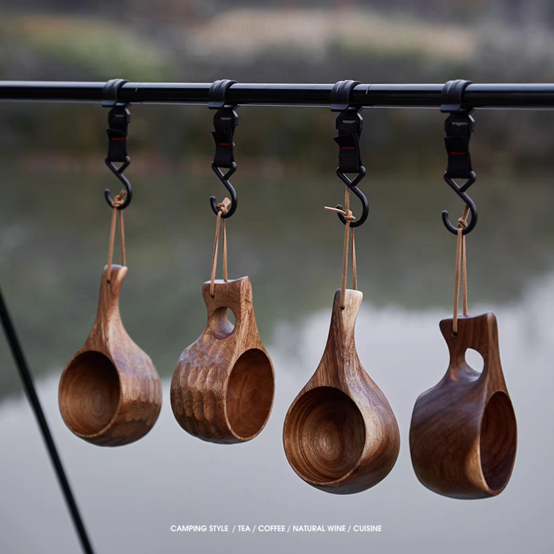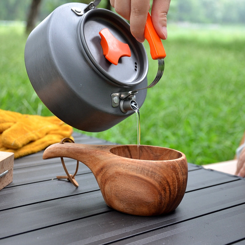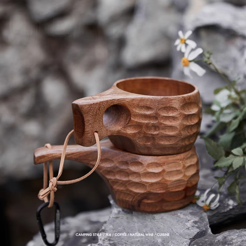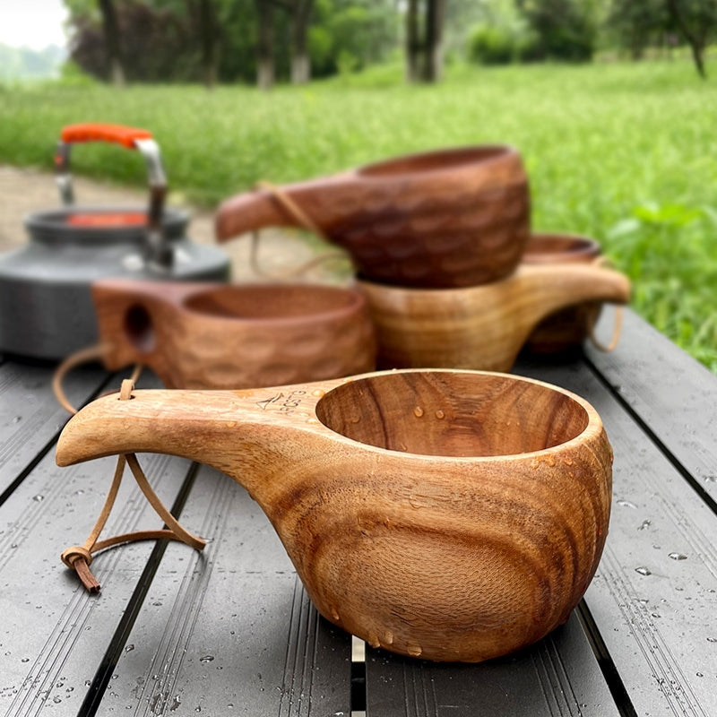 FIDO - Time to Imbibe in the Great Outdoors! Our Walnut Mug - 8 oz is the perfect sidekick for your sipping needs. Crafted from beautiful walnut wood, it's both stylish and eco-friendly. Choose from 4 handle styles and use it as a cup or bowl for all your adventures. Plus, with a handy lanyard, you can tote it around with ease and take a swig wherever you roam. No need for a coating, just drink and enjoy!