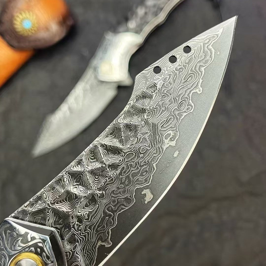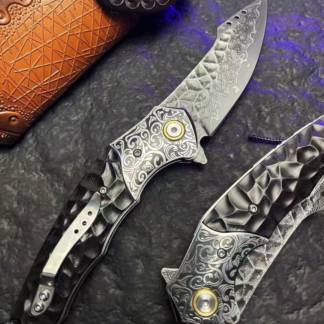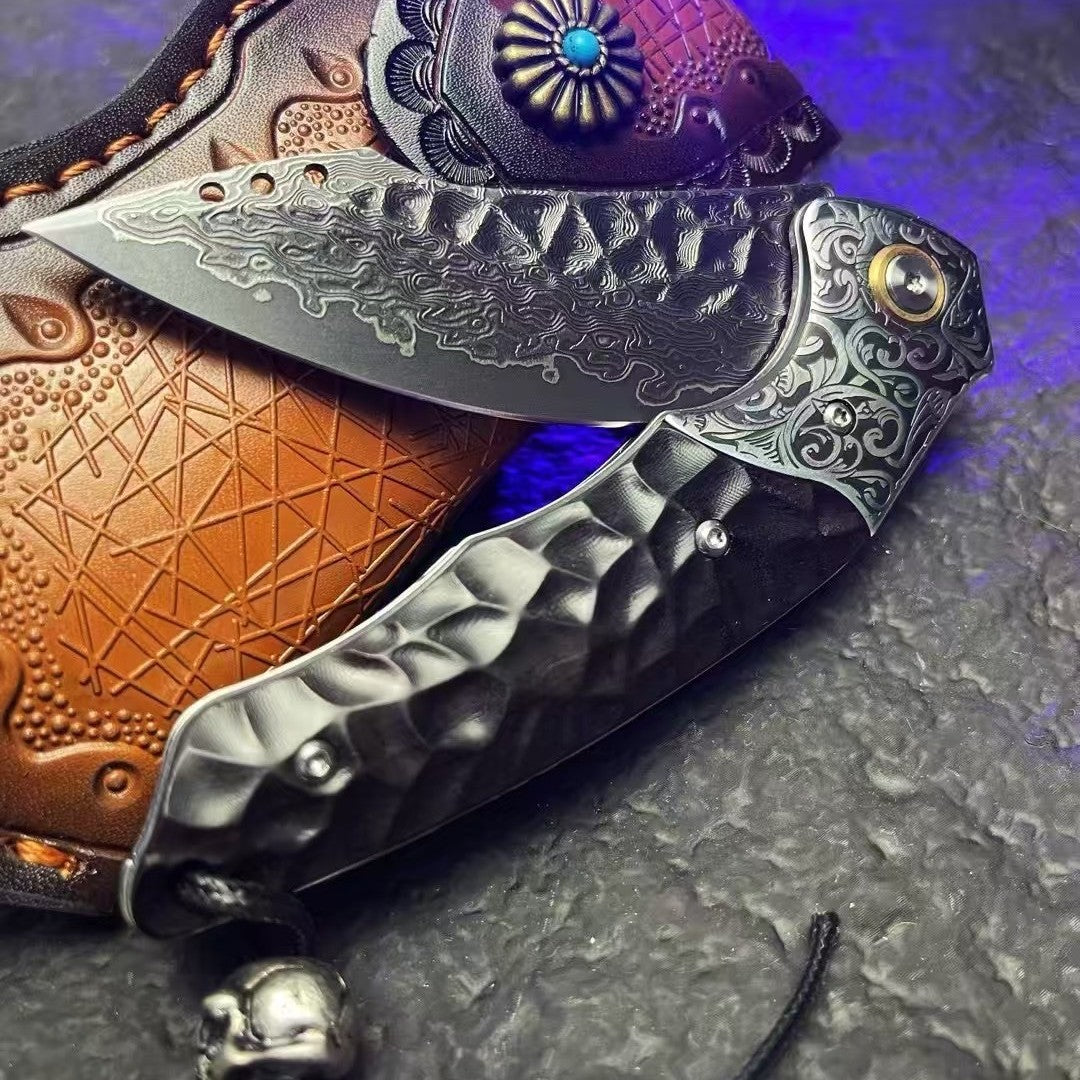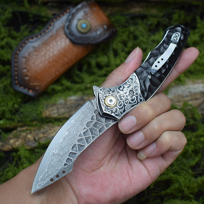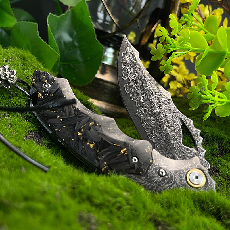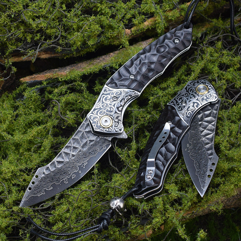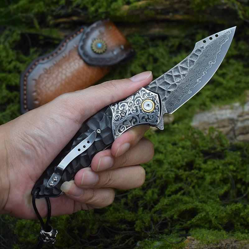 ⭐Crafted for the bold, the ELMO VG10 slices through challenges with its hand-forged Damascus laminated steel blade—razor-sharp and built to endure the wildest conditions. Feel the thrill every time you flick open the knife, thanks to its smooth bearing-spring system. The gold-tempered carbon fiberglass handle grips firmly, blending comfort with a fearless edge. Distinctive and perfectly balanced, this knife turns routine carry into an adventurous experience, made for those who dare to push boundaries and demand top-tier craftsmanship.