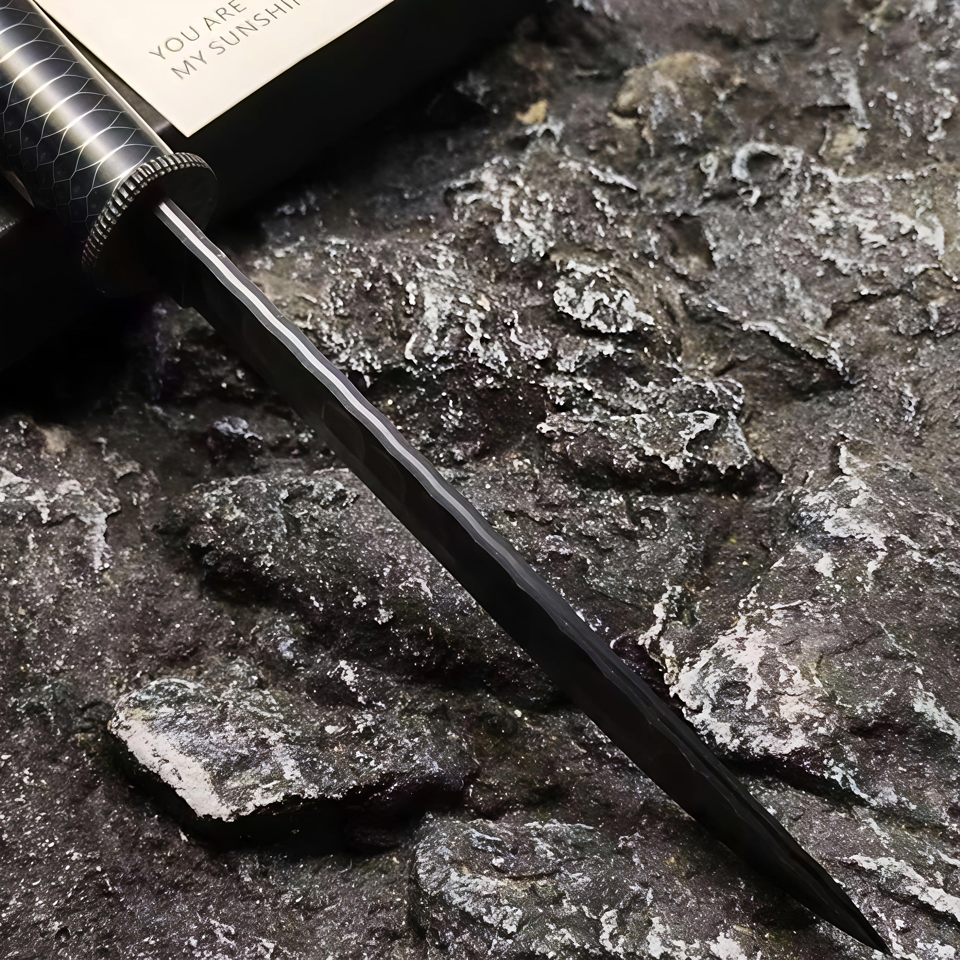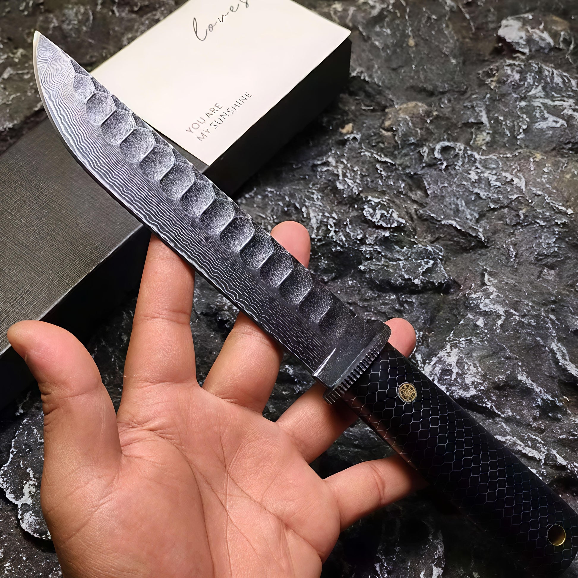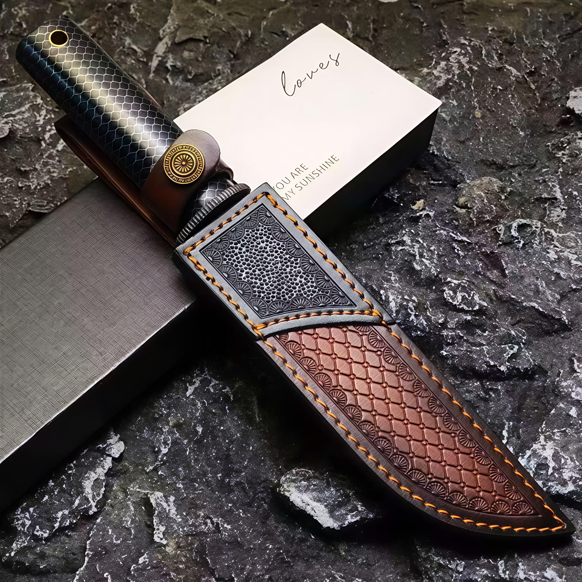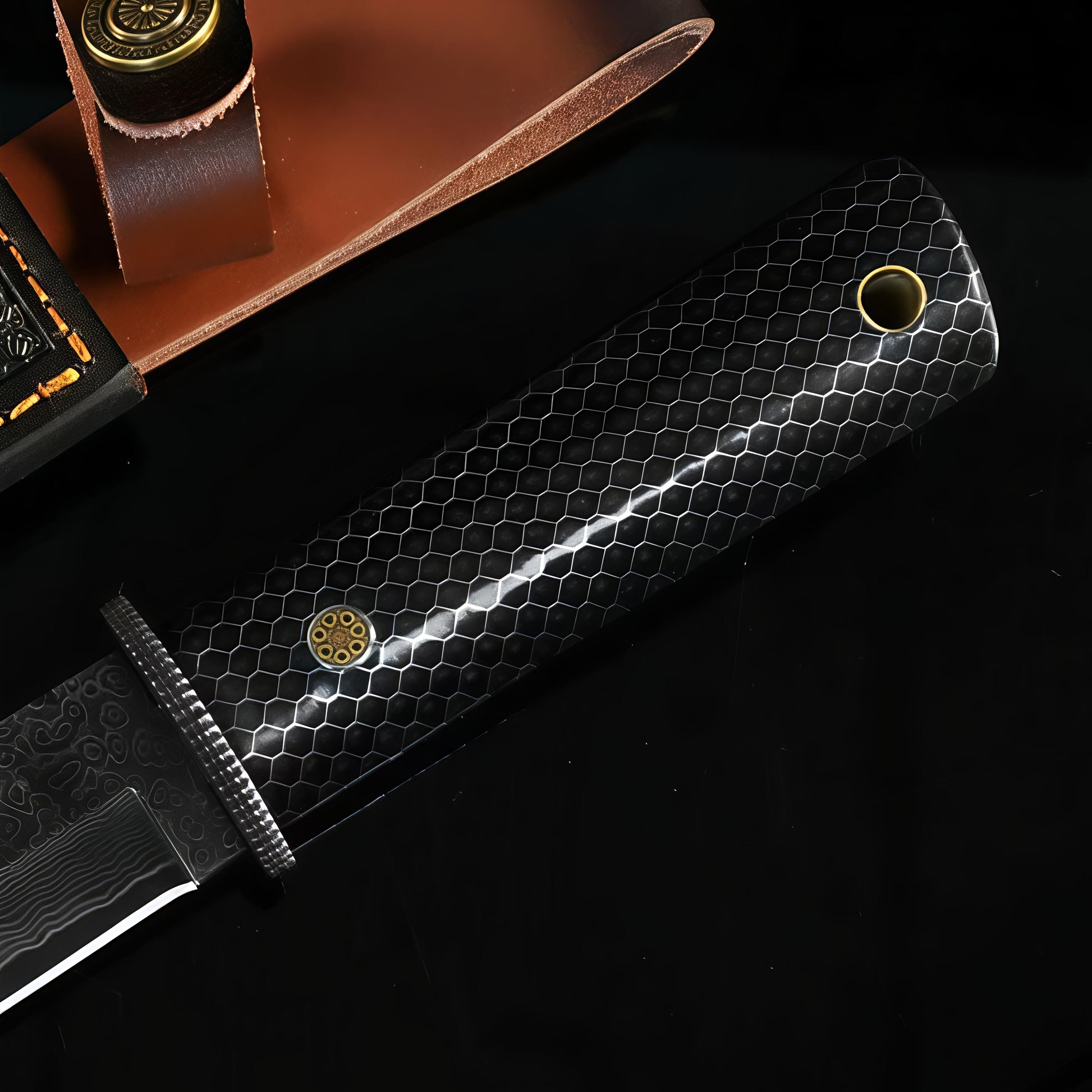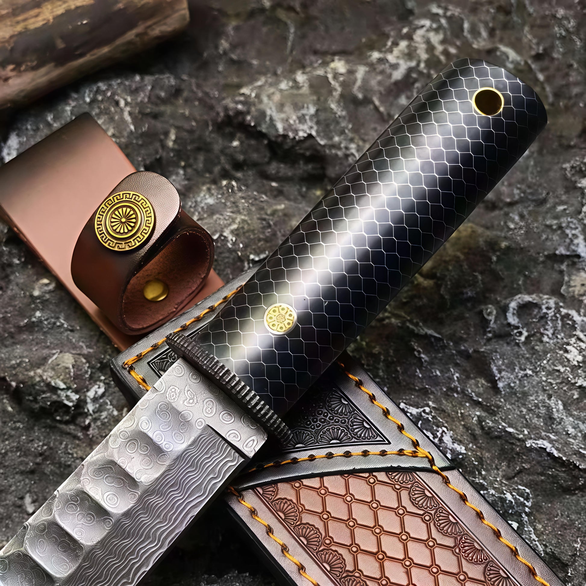 The AMOS is built for those who refuse to settle. Forged in Damascus VG10 steel with a hand-hammered concave blade, this knife dominates every cut. Carbonized blackening and cold-water sharpening technology eliminate meat stick—pure efficiency with every stroke. Full-tang construction paired with a resin and aluminum film handle delivers unwavering control in the most brutal conditions.From breaking down game in harsh conditions to executing surgical kitchen cuts, the AMOS is pure performance: a blade that refuses to quit, engineered for those who won't either.