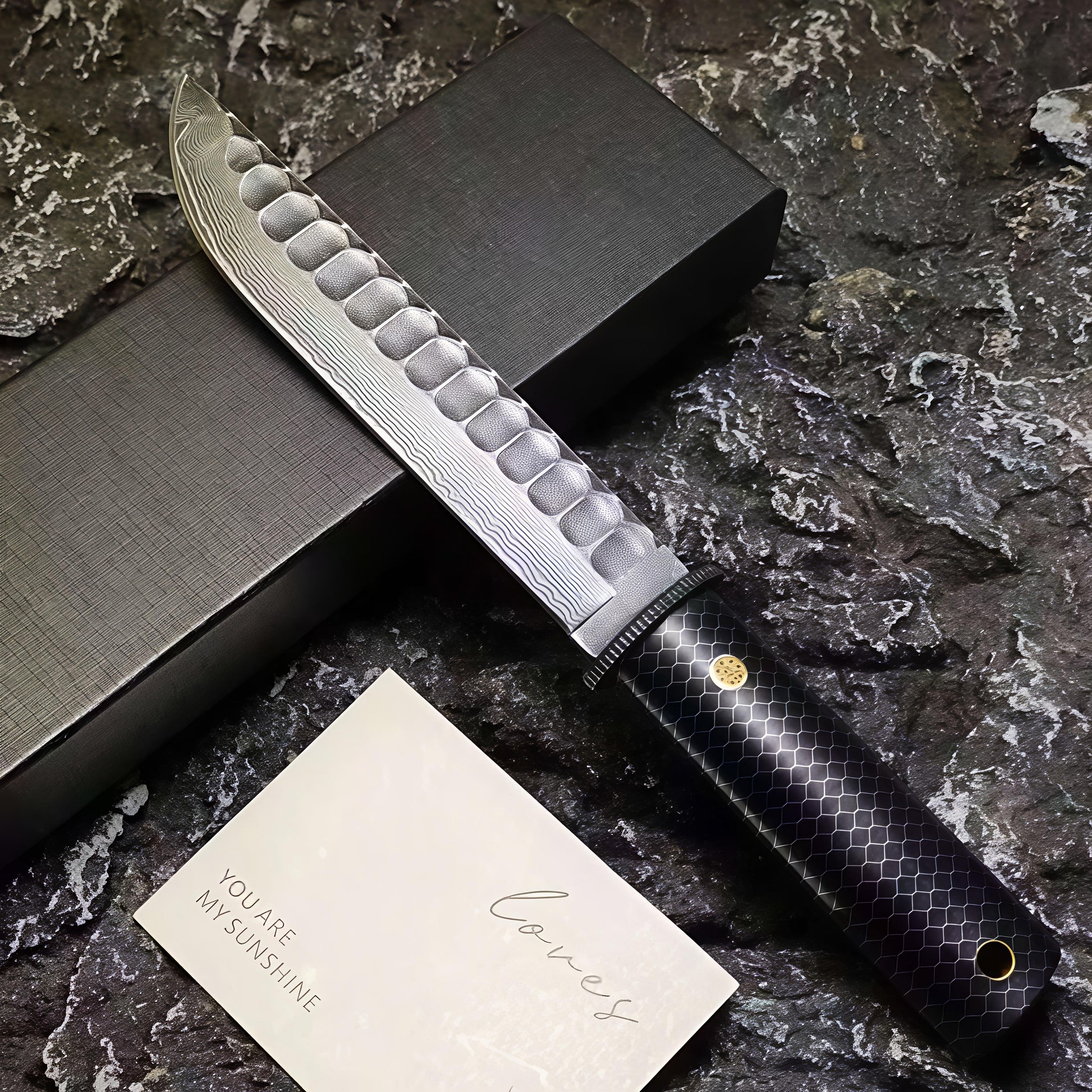 🔩 4.2mm thick + full-tang VG10 Damascus steel – hand-hammered concave blade with carbonized blackening and cold-water sharpening technology—pure efficiency with every stroke.