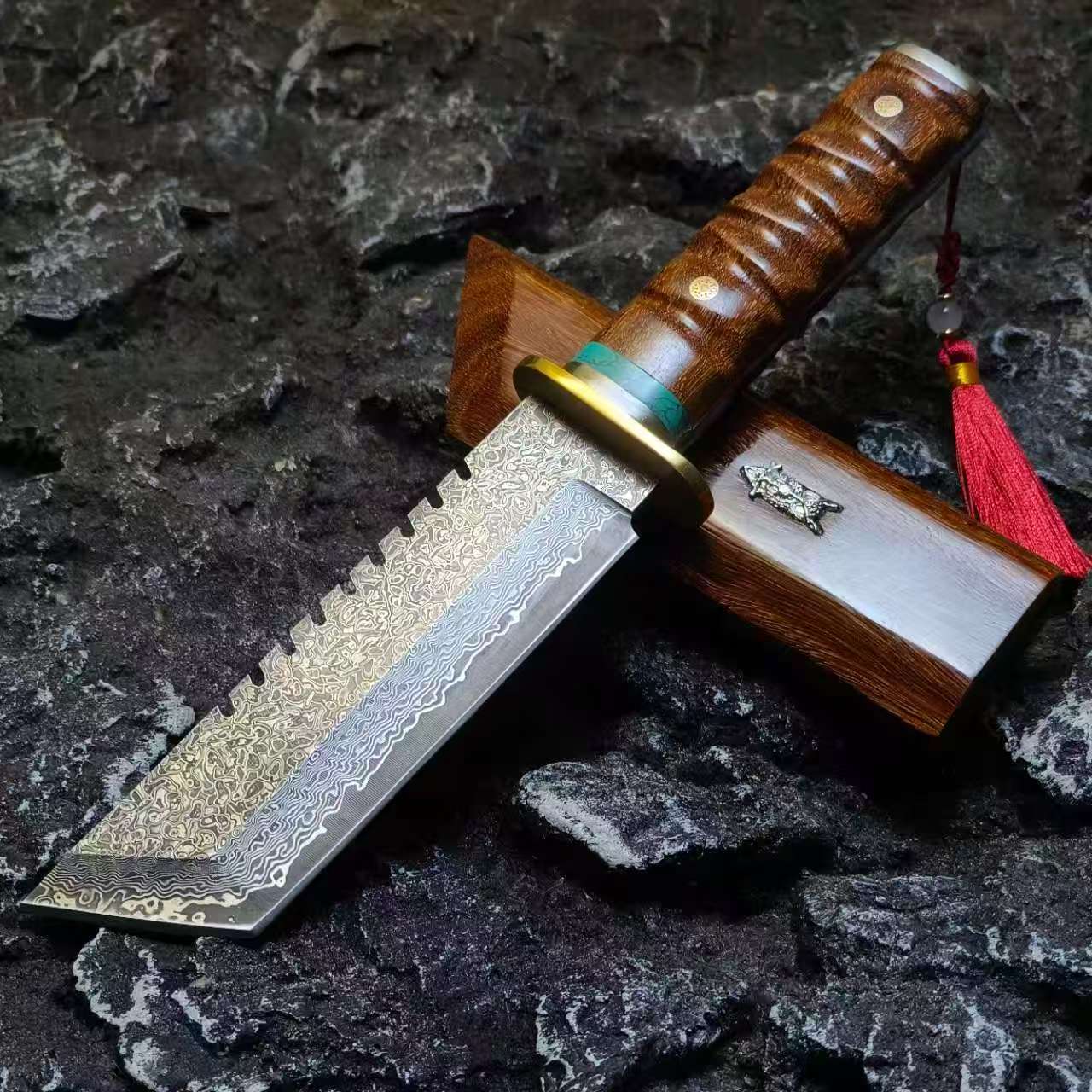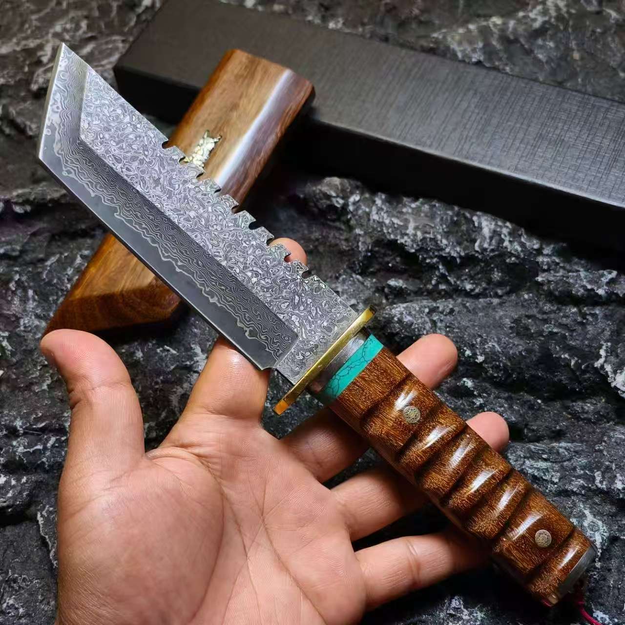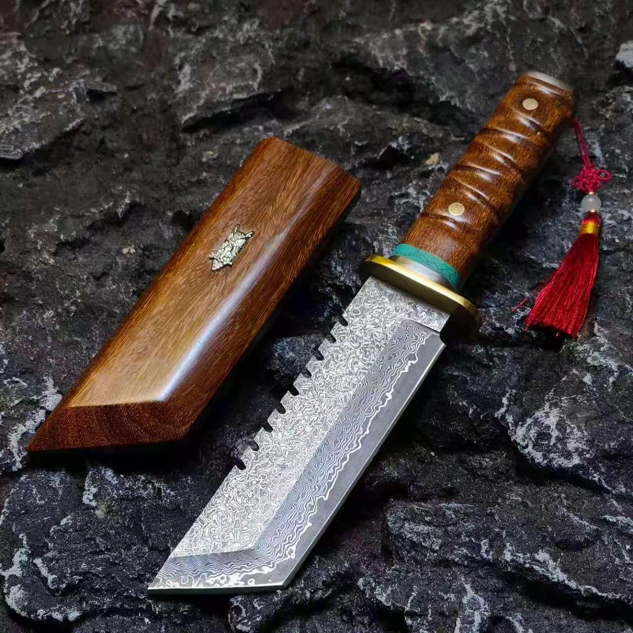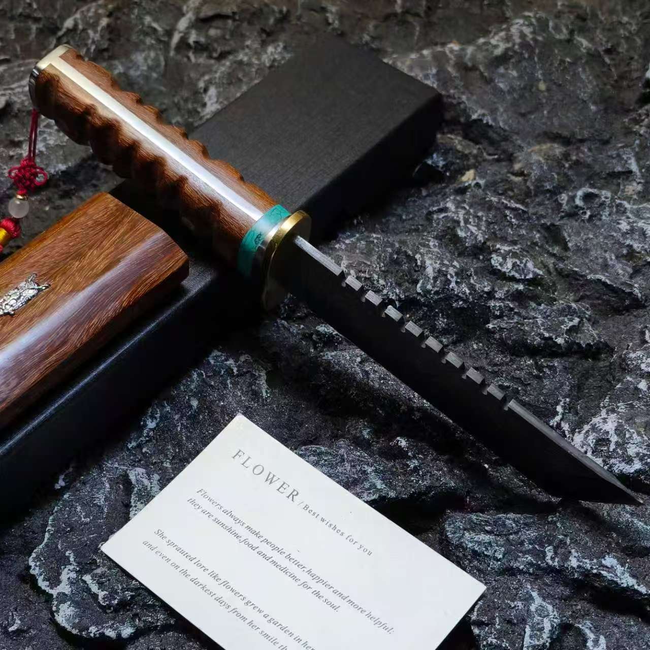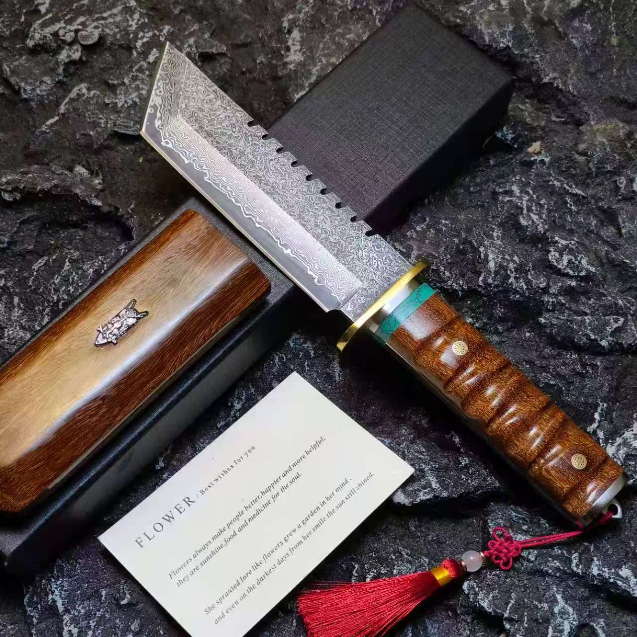 🛠️Rosewood Handle & Matching Sheath – Premium grip with high durability in wet or dirty conditions.