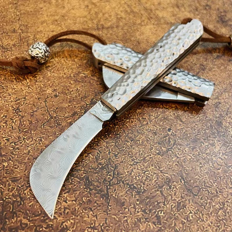⭐ Damascus CNC carved handle, feels comfortable and fits the palm;