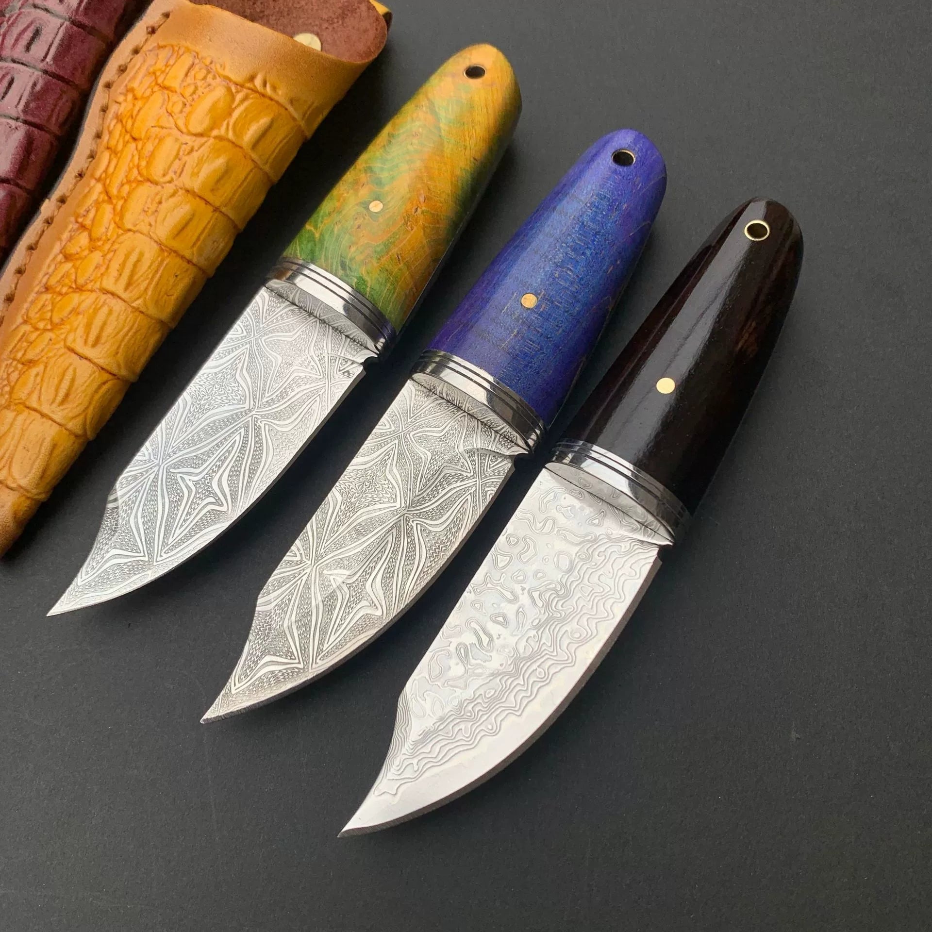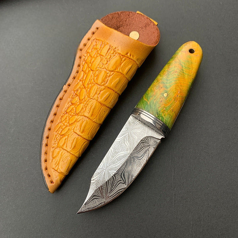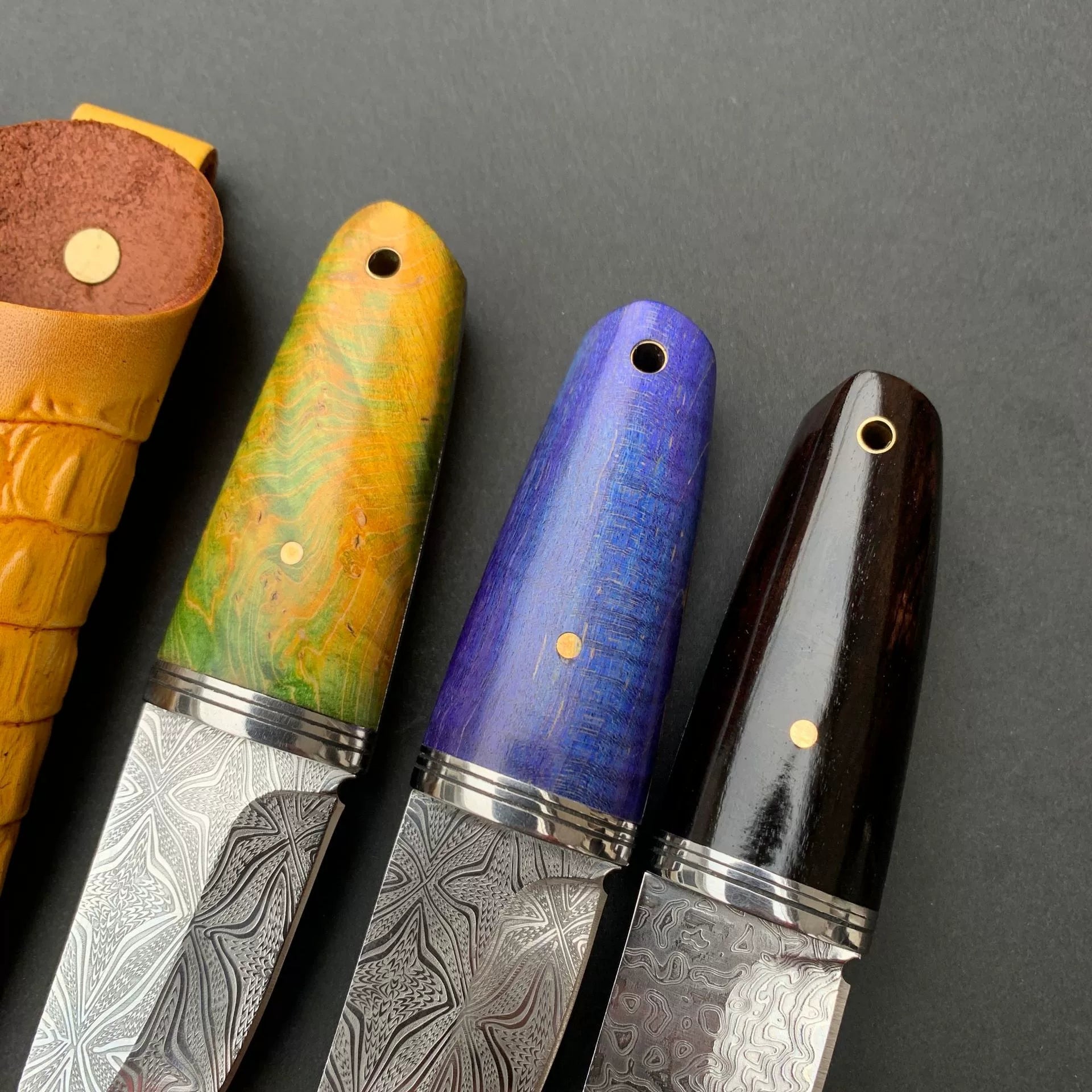🔥CLAUDE is inspired by the sharp front claws of the velociraptor, making it both practical and collectible. It is forged from 67 layers of VG10 Damascus steel, providing a sharp blade that can easily handle all kinds of tasks, from cutting meat to sharpening wood. The non-slip stabilized wood handle and custom textured leather shell add to its high-quality construction.