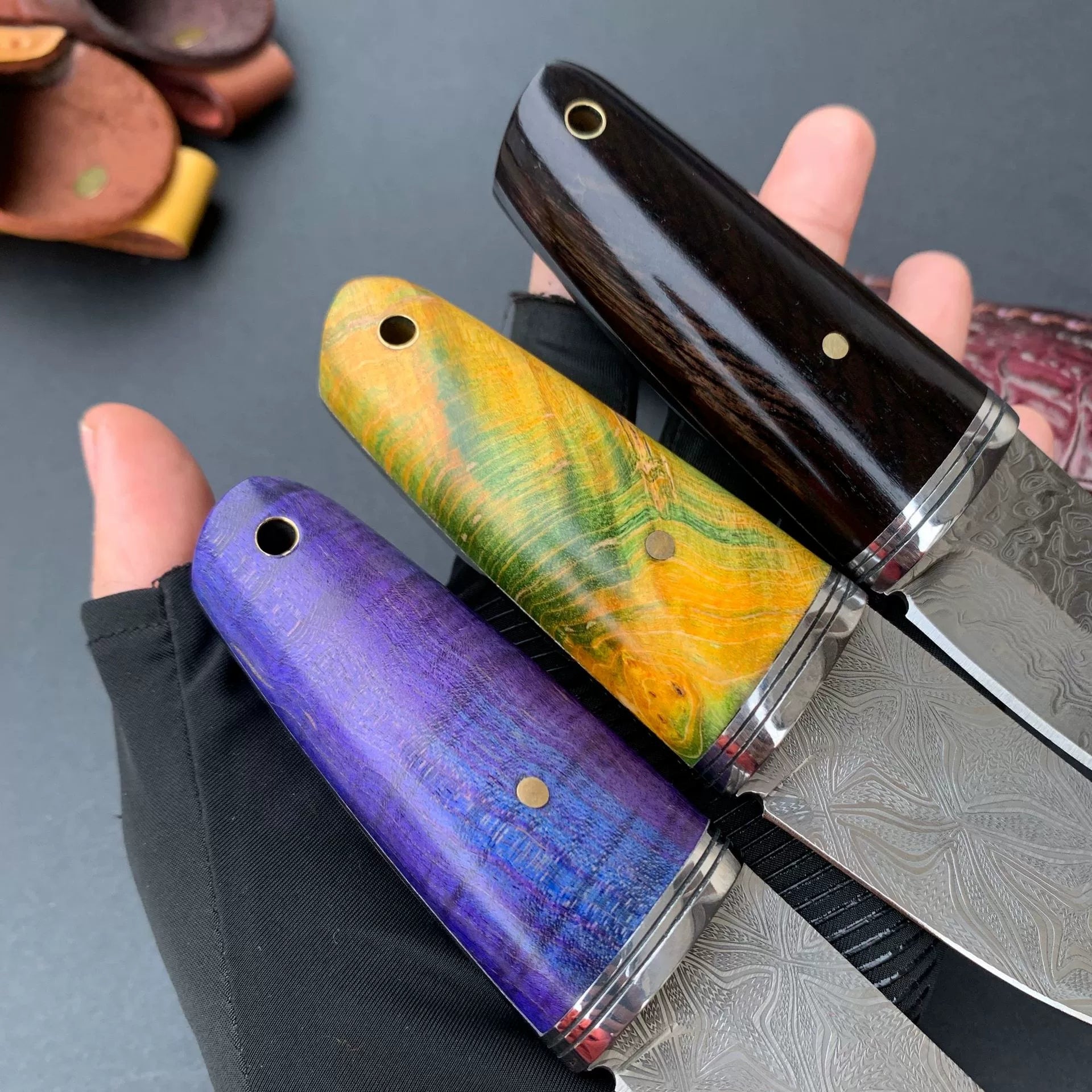 The handle is constructed from stabilized wood, a specially processed type of wood that is cured by removing all air with a vacuum pump and then injecting pigment paste and resin to enhance the wood's natural pattern. Stabilized wood offers high hardness, excellent resistance to deformation, and waterproof properties. The added pigment in the resin results in unique and vibrant colors in each piece of stabilized wood.So, the handle color of each CLAUDE is unique.