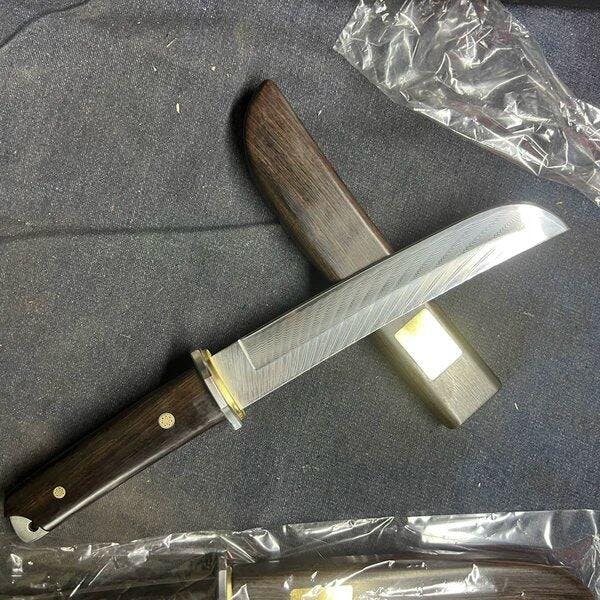 🛠️ Ebony Wood Handle & Matching Sheath – Premium grip with high durability in wet or dirty conditions.