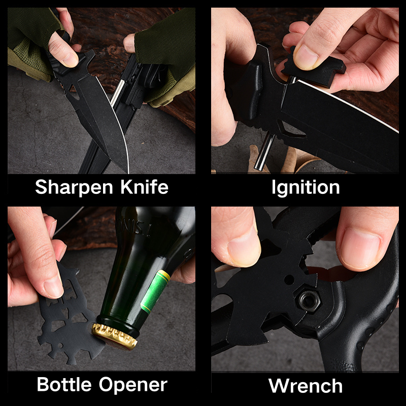 âEquipped with accessories such as a fire starter, multi-function tool card, and knife sharpener, it can solve all kinds of wilderness survival needs for you.