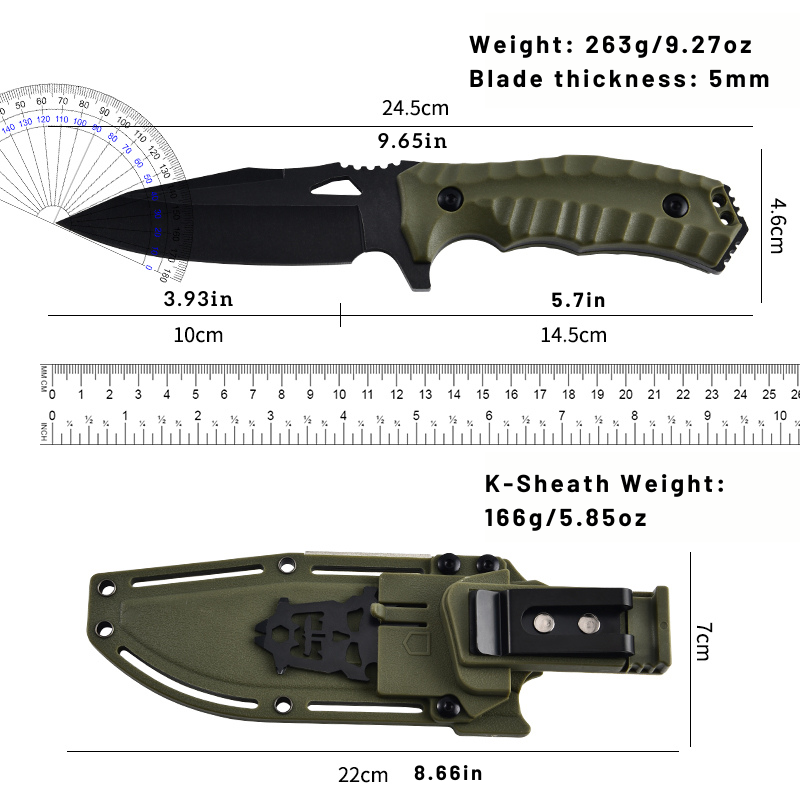 âHigh-precision CNC cutting edge, Drop Point head design, strong penetrating power. The Nylon Fiberglass Handle is designed to fit the human body and has a unique anti-slip texture.