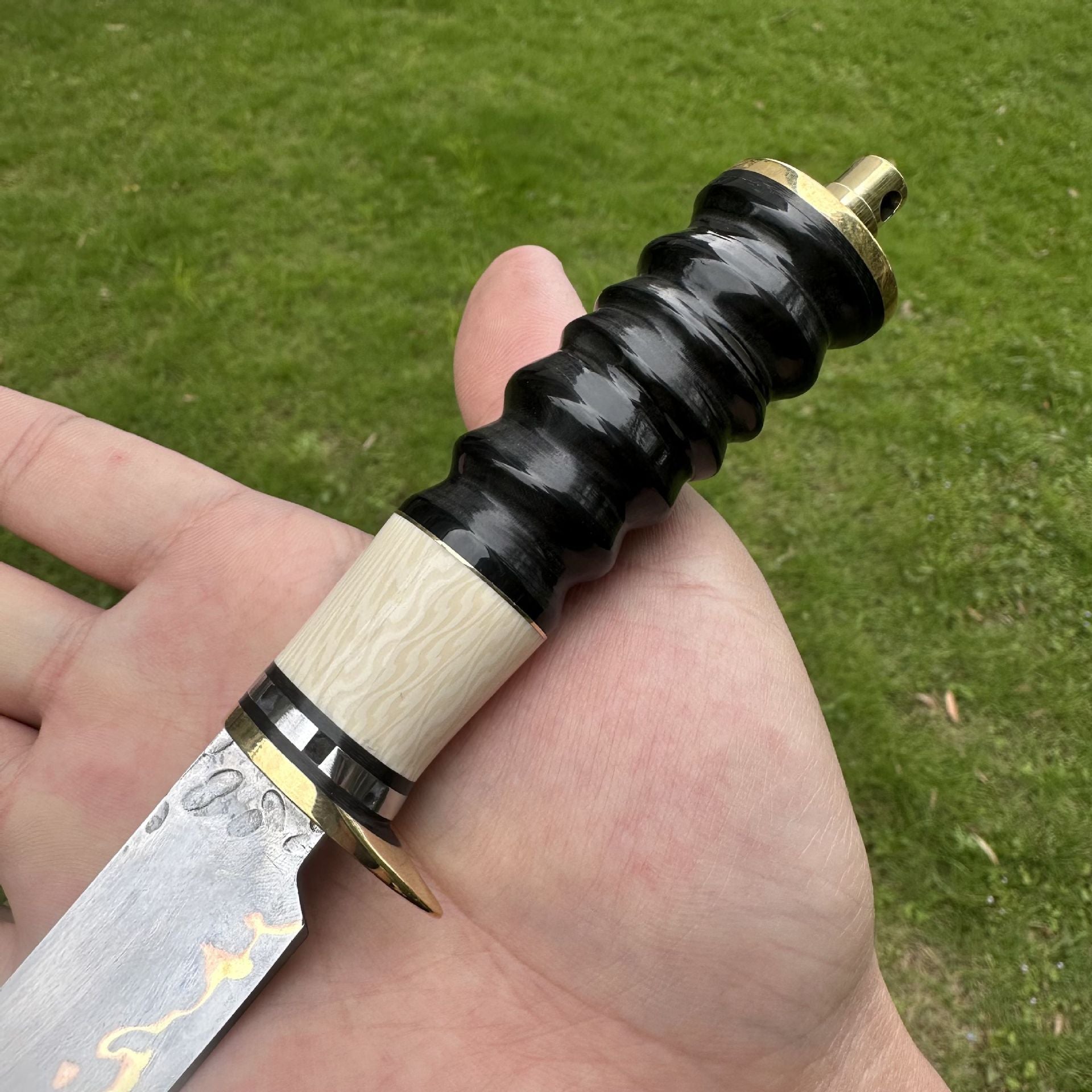 🔩 3.6mm full tang VG10 Damascus steel – Featuring a Damascus steel blade inlaid with brass, it's both elegant and durable.