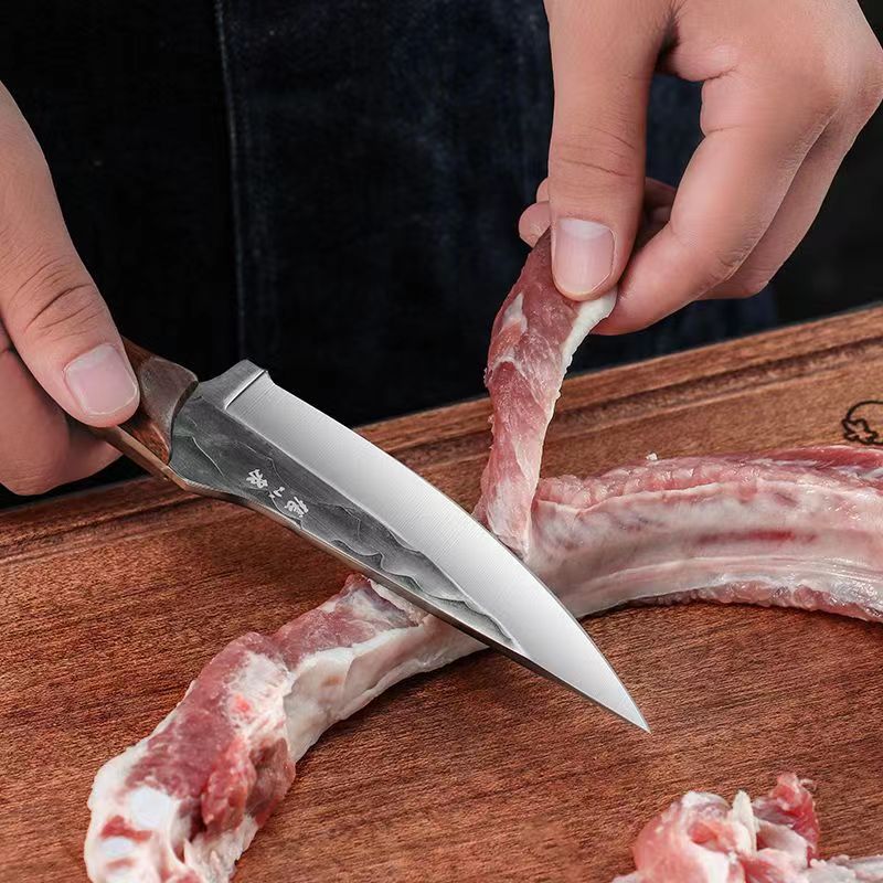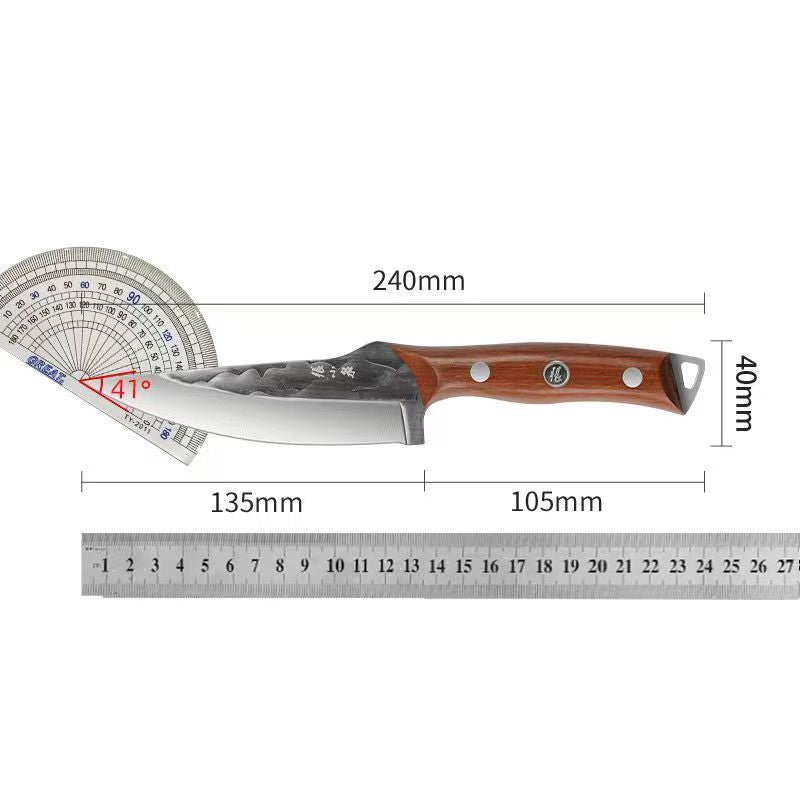 This little monster is an essential helper for your outdoor camping. It is hand-forged with 40Cr13 high-quality steel, sharp and wear-resistant, and has strong corrosion resistance. It is matched with a South American sandalwood handle. It can easily help you complete field work such as cutting, deboning, and cutting branches.