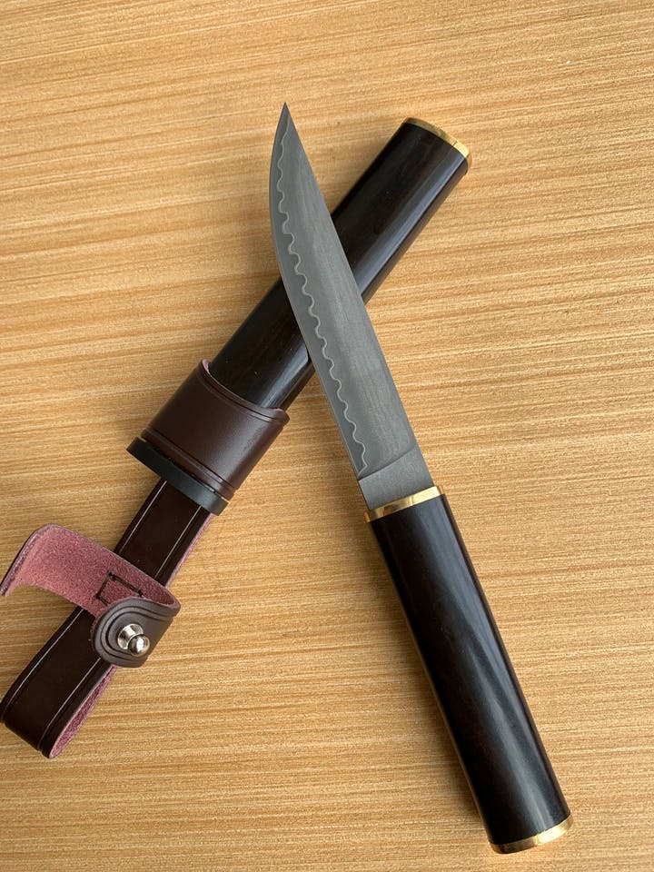 đ„MARUZO is a versatile, essential kitchen knife that combines the strengths of both Japanese vegetable and meat knives for all your cooking needs. Its high-carbon SKD11 steel ensures durability and wear resistance, while the rosewood handle and scabbard add both aesthetic appeal and practicality. Perfect for any home chef.