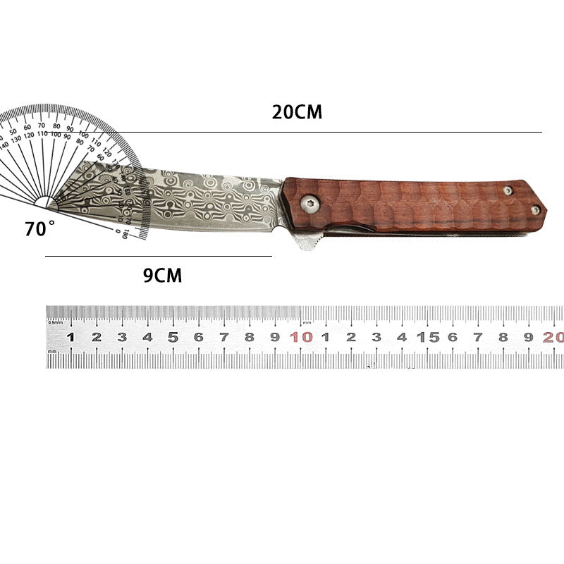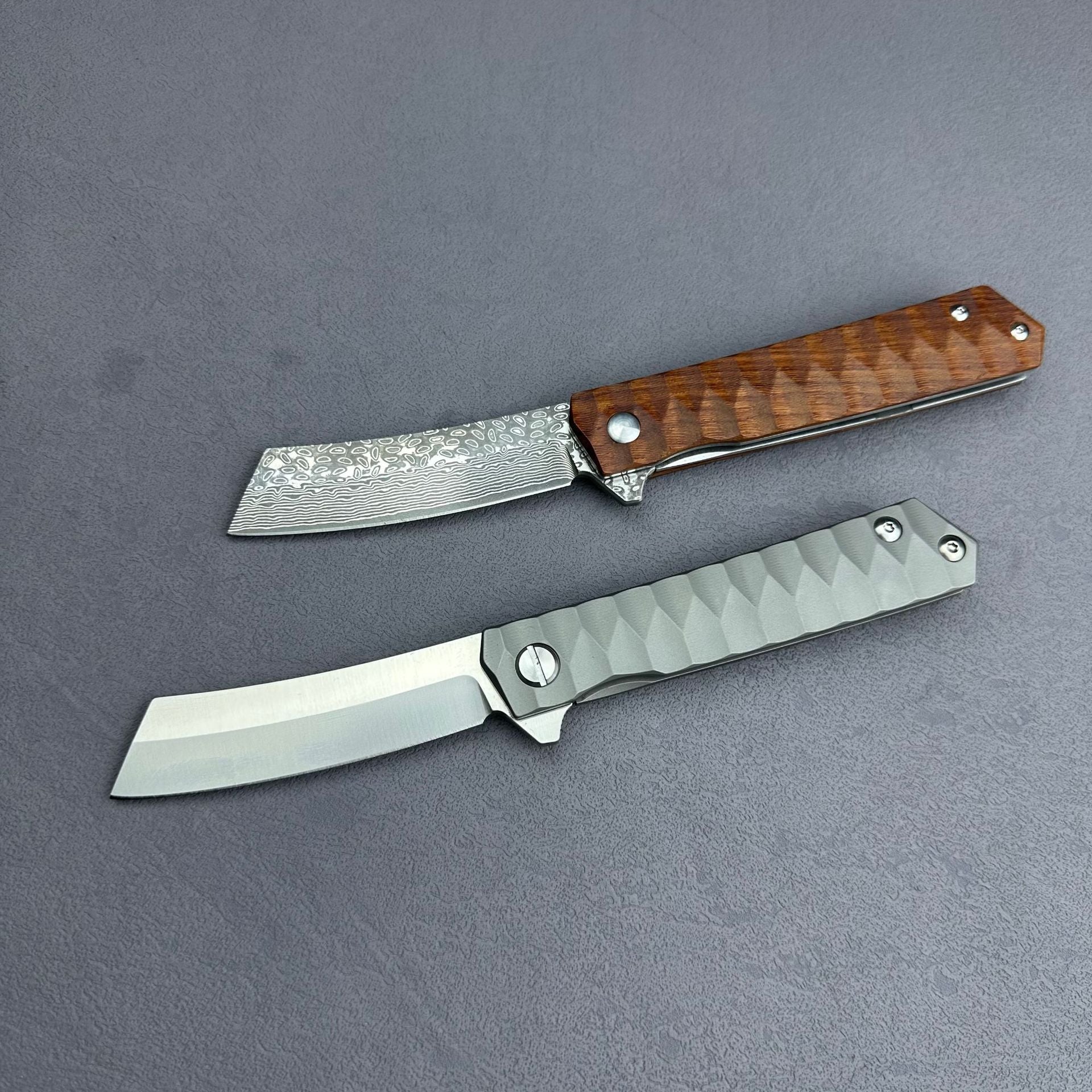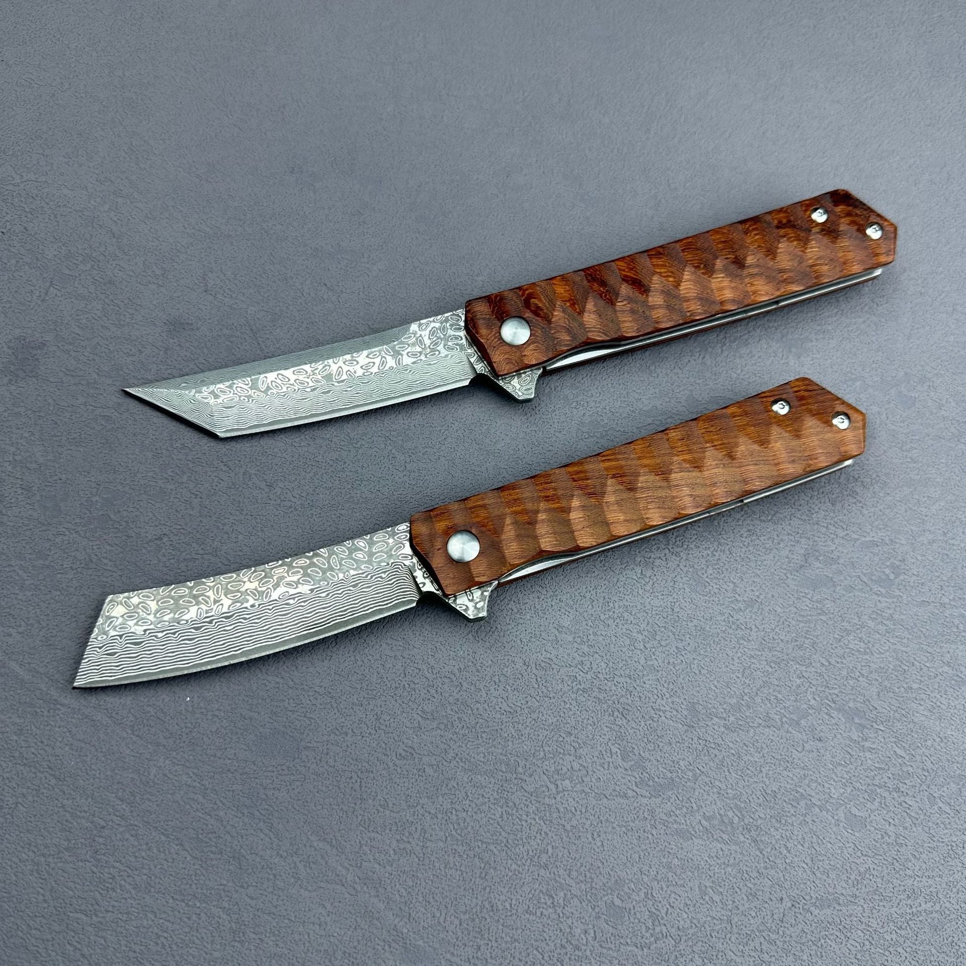 ⭐MILES is a versatile folding knife designed for outdoor activities. The CNC water grinding and VG10/D2 steel blades ensure precise cutting, while the handle offers a comfortable grip in either titanium alloy or rosewood. With options of American Tanto or Samurai sword tips, MILES is a compact and versatile option for any outdoor adventure.