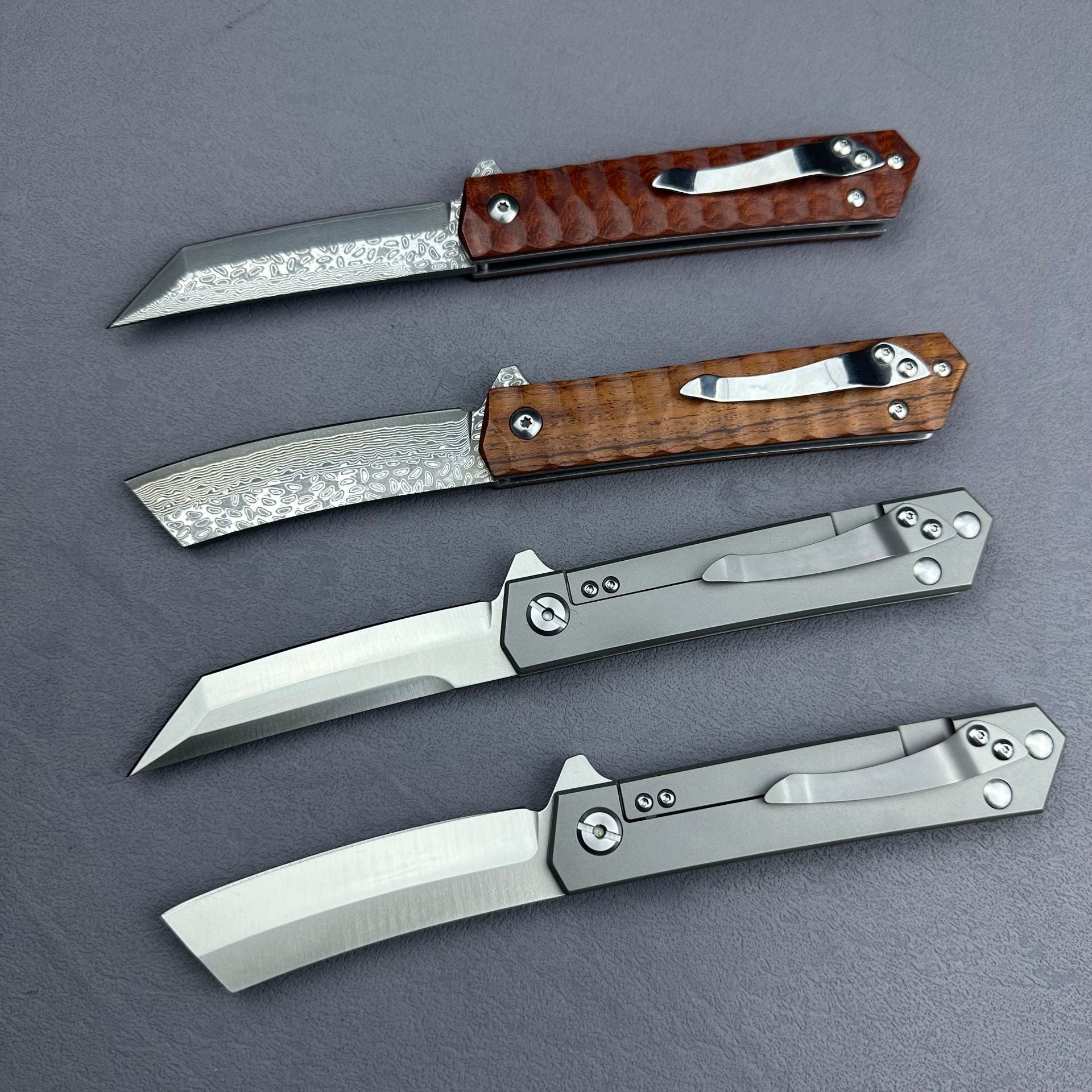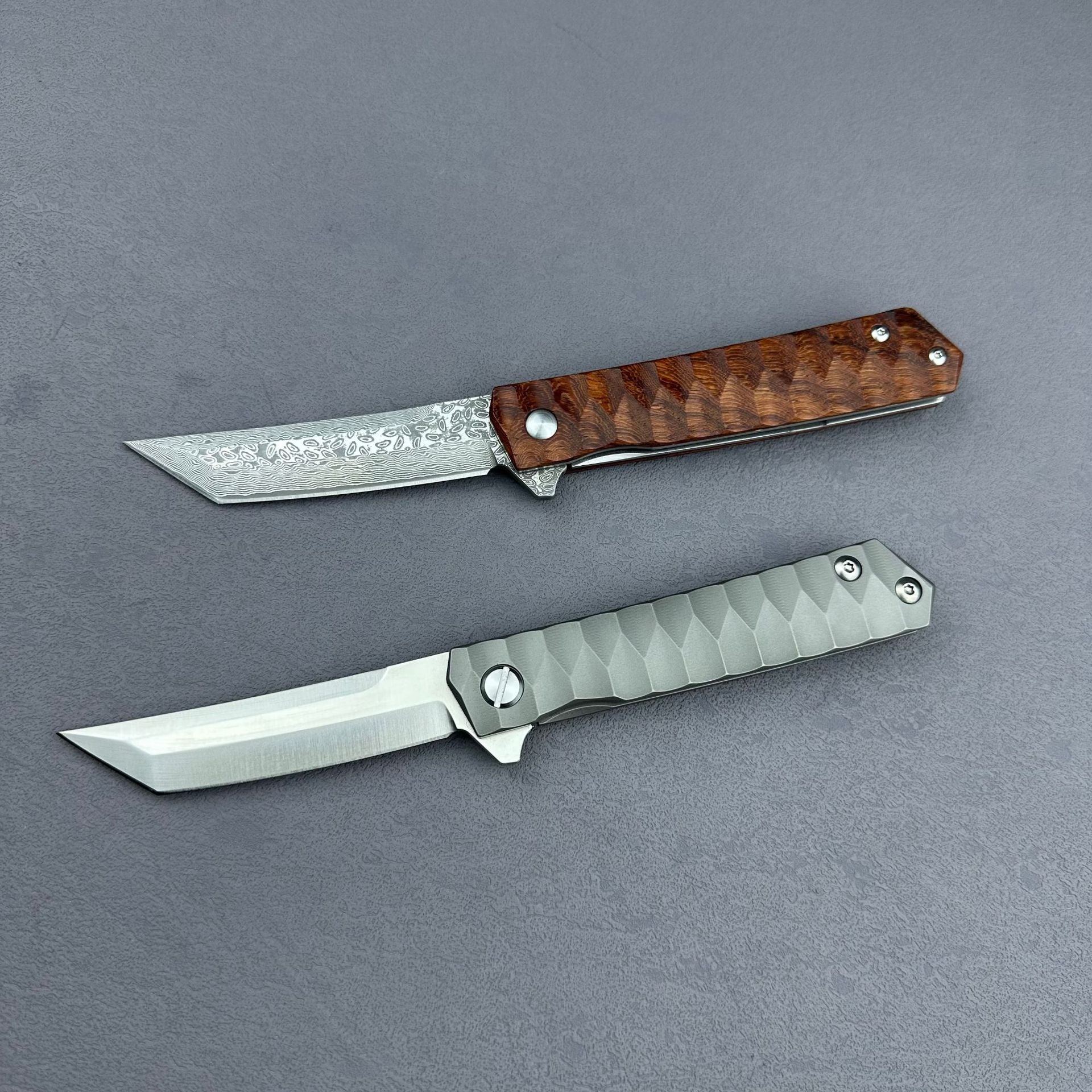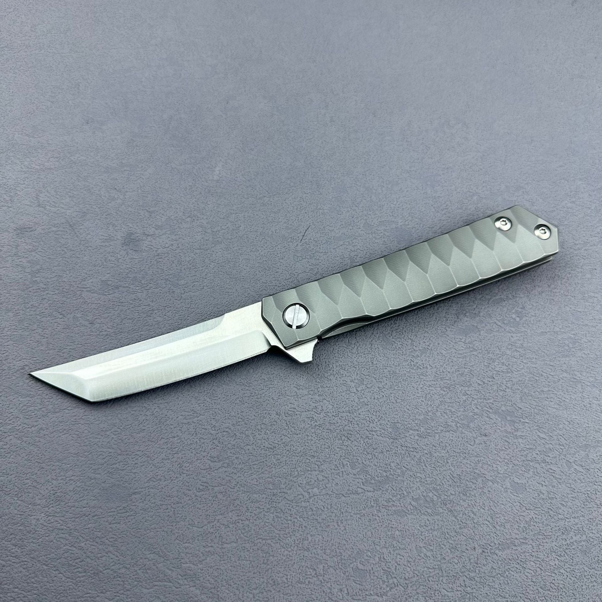 ⭐MILES is a versatile folding knife designed for outdoor activities. The CNC water grinding and VG10/D2 steel blades ensure precise cutting, while the handle offers a comfortable grip in either titanium alloy or rosewood. With options of American Tanto or Samurai sword tips, MILES is a compact and versatile option for any outdoor adventure.